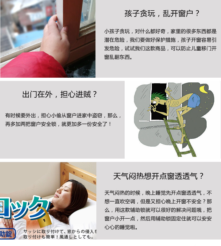 |   Характеристики продукта |   детские Открытым окно Домохозяйство слишком опасно, это также может предотвратить детские Открыть дверь Перевернуть вещи; когда погода ошеломляющая верх открытым окно воздухопроницаемый нарушенный полностью , Замок с вспомогательным замком окно домашнее хозяйство воздухопроницаемый ,установить полностью более того |