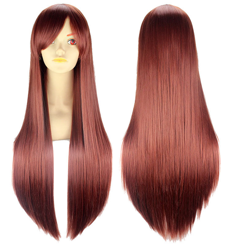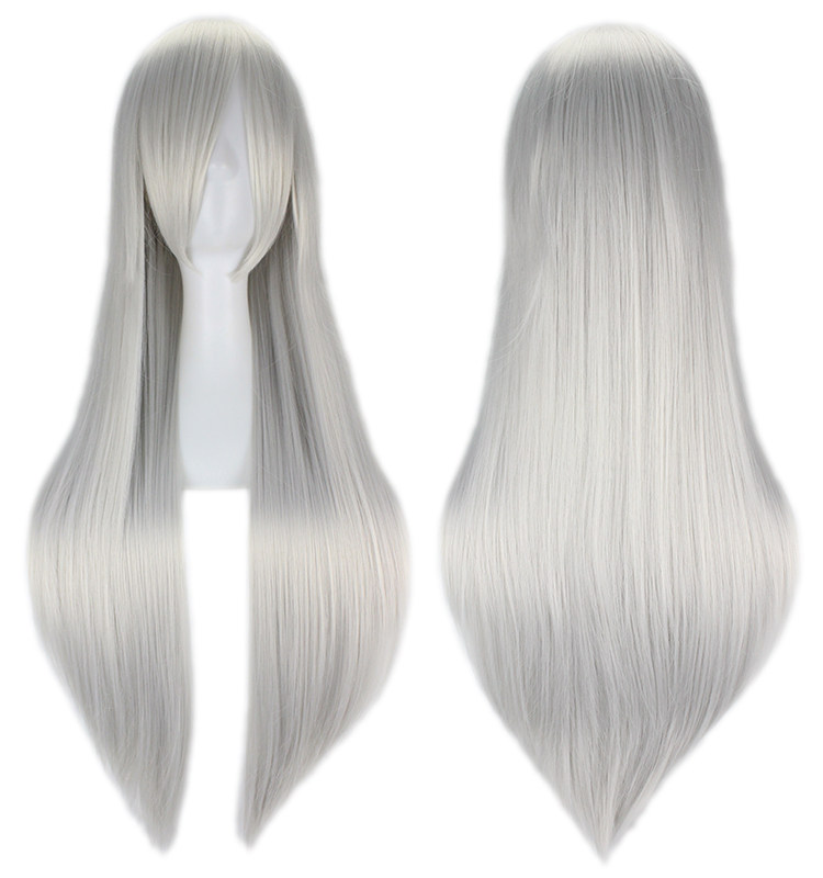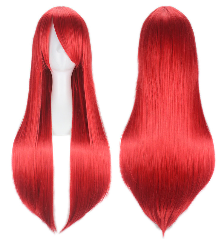 80см длинный прямой игра косплей поддель черный белый красный Длинная простая производительность разноцветный Парик лицом