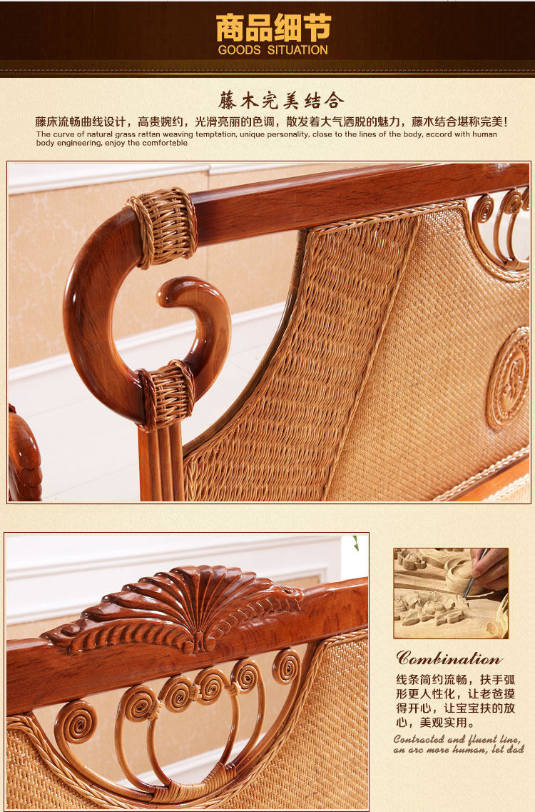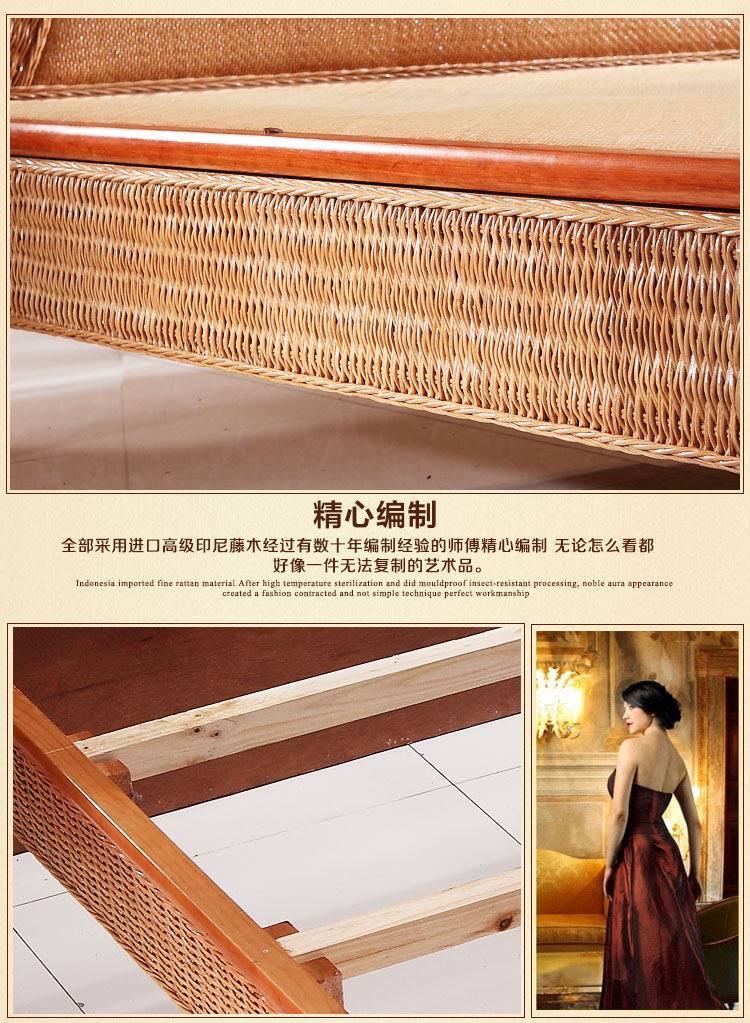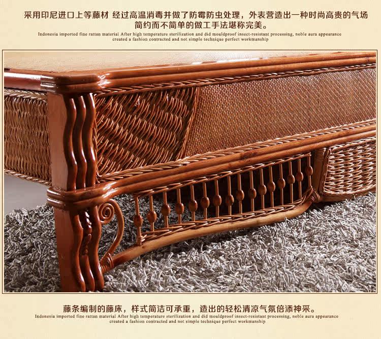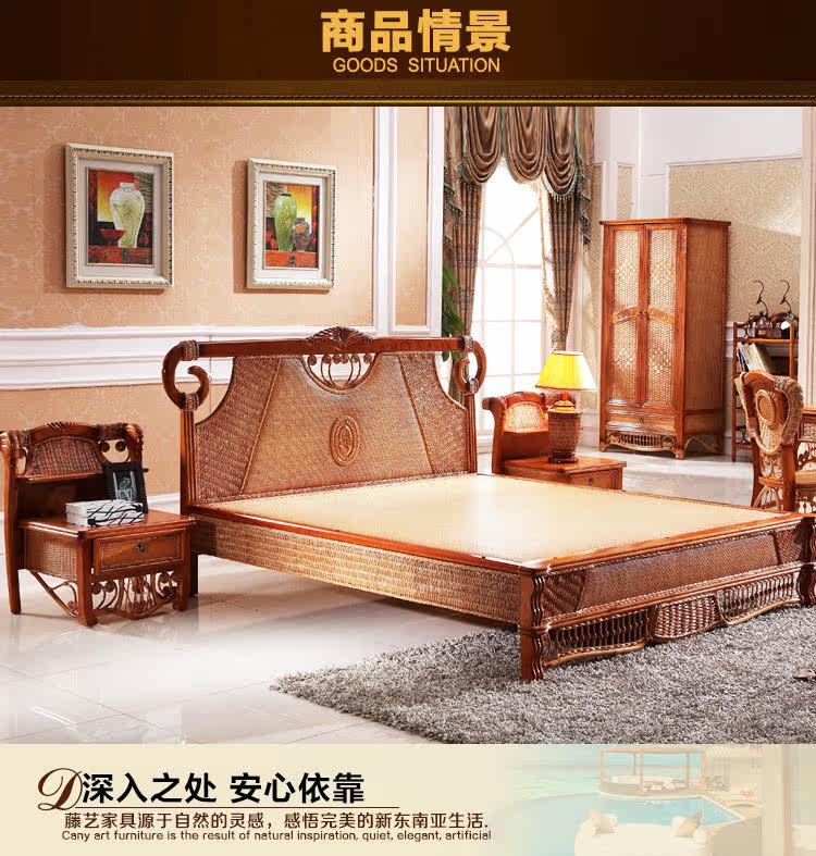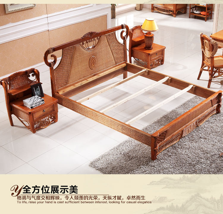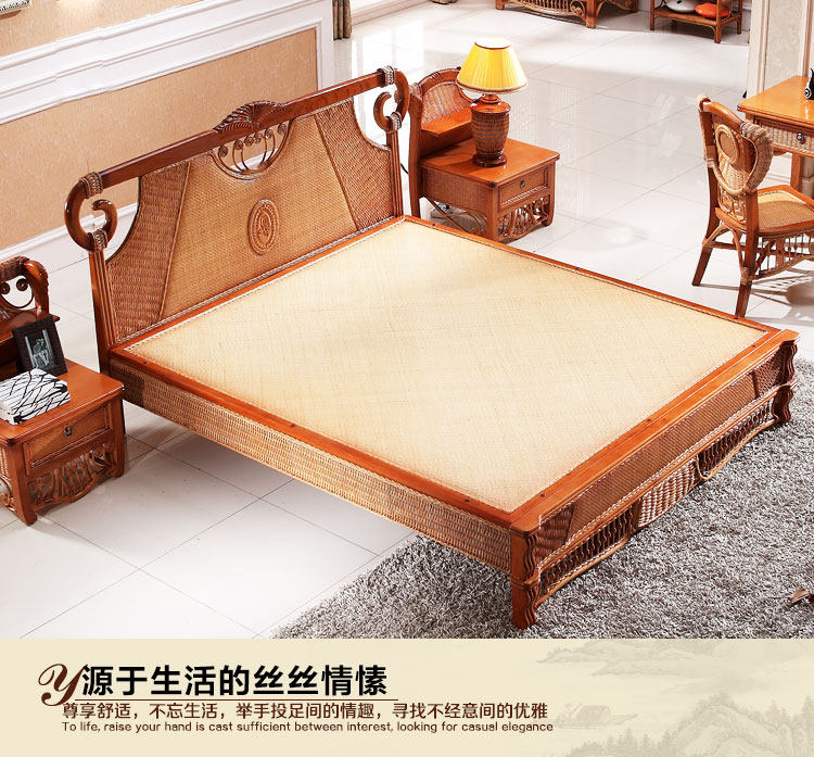 Нашард Ротанг панель Локальная кровать 1,8 м. Кровать двойной большой кровати лоза для виноградной лозы