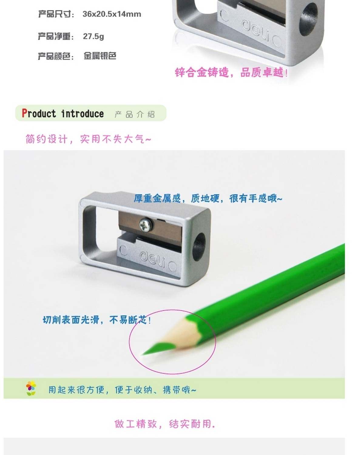 Deli Deli 0596 Держатель сплава цинкового сплава Бизнес строгальный нож Поверните ручку нож студент карандаш нож рулон рулон нож