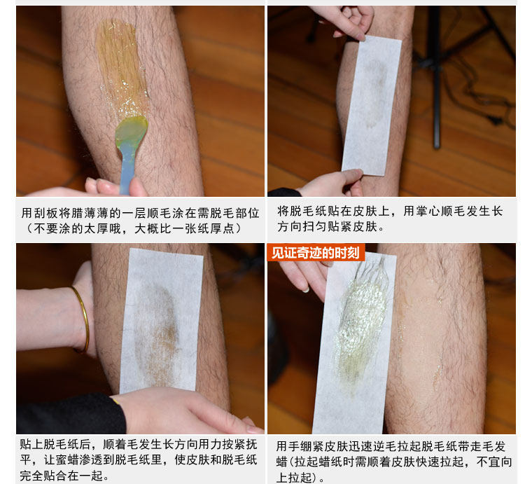 1. Проверьте липкость депиляционного воска, если это связано с зимний Если температура слишком низкая и слишком вязкая, вы можете положить ее в микроволновую печь и нагревать в течение 10 секунд или опустить в горячую воду на 1 минуту. летом без Этот шаг обязателен.