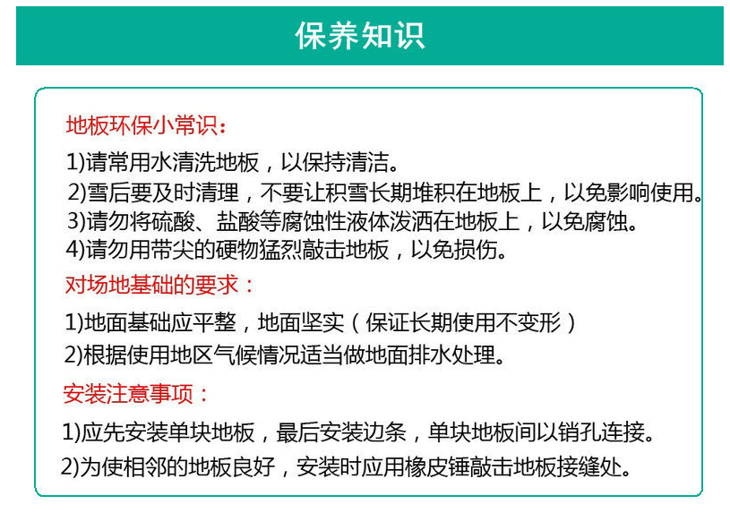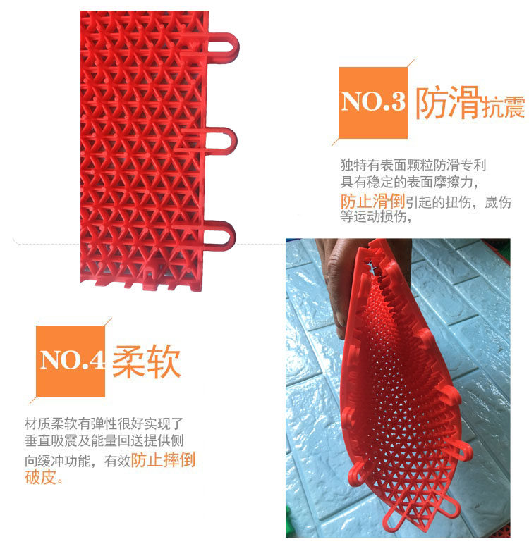 6,An полностью Защита окружающей среды: По сравнению с твердым грунтом, собранным грунтом панель С участием имеет Хорошая безопасность полностью Производительность, амортизация и защита от эластичные , Хорошо достичь вертикального поглощения ударов и рекуперации энергии в подарок , сторона В буфер, нескользящие , Предотвратить спортивные травмы, имеет Эффективно защищают спортивную безопасность спортсменов полностью И полностью раскрыть потенциал человеческого движения. Полипропилен используется в качестве сырья.(ПП)для высокая Материал прочности, без Токсичен и экологически безопасен.