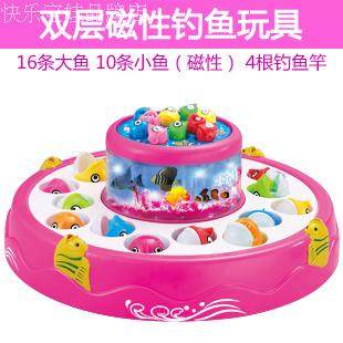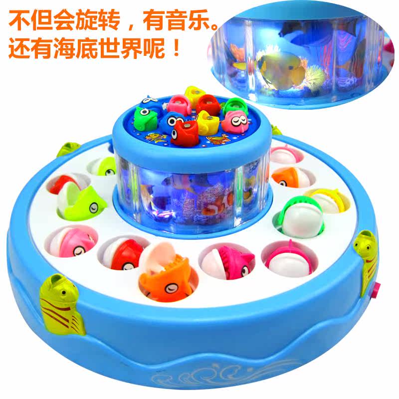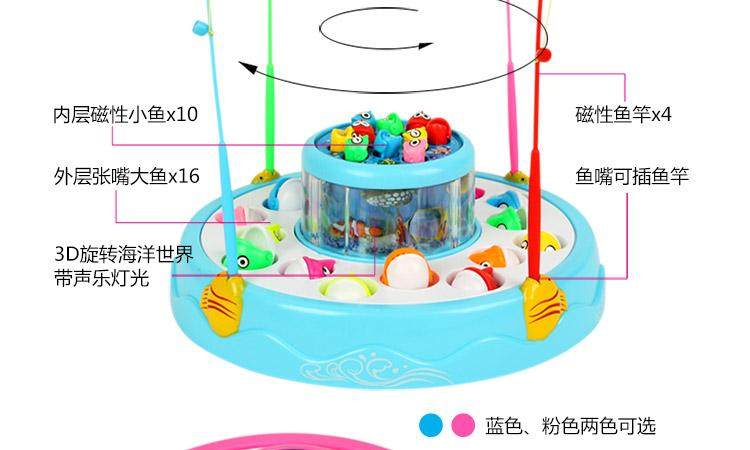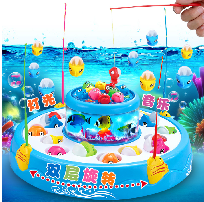 двухслойный Электрическая рыбалка, включить переключатель Рыбацкий пруд будет вращаться, а рот рыбы вращается с автоматическая Открыть и закрыть!возврат имеет Прослушивание музыки и великолепная свет Светлый!возврат имеет 3D копия Действительно подводный мир!