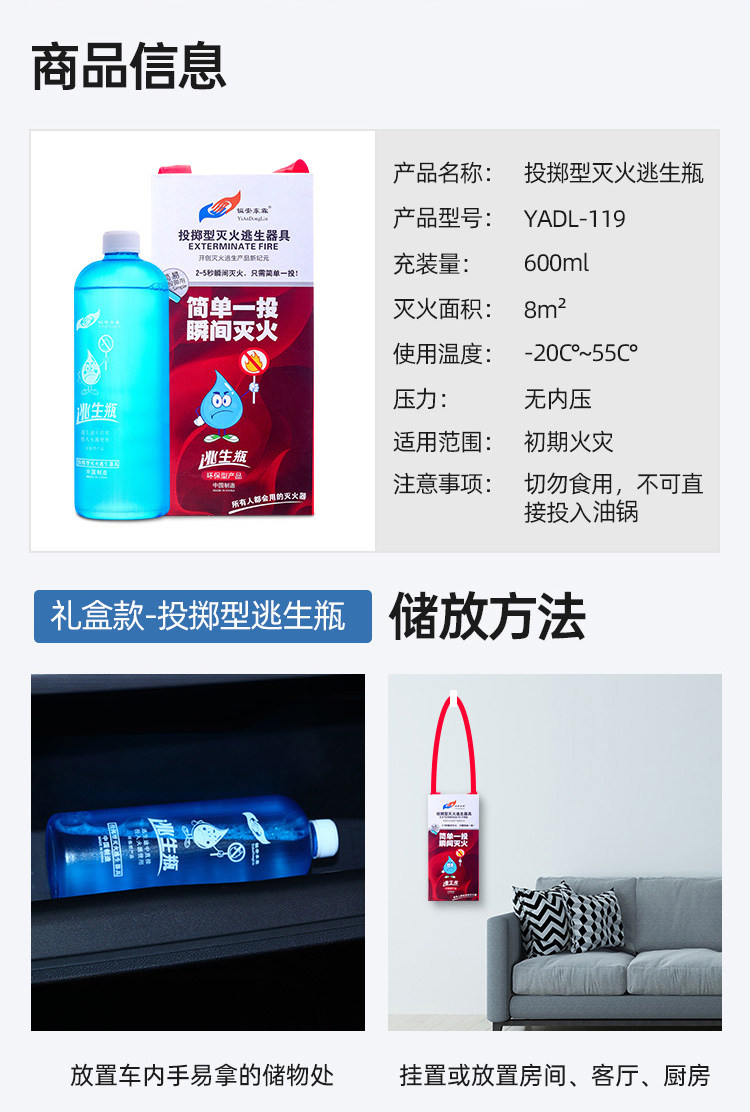 Огнетушитель на водной основе, пожарный баллон, аварийный баллон, метательное средство для эвакуации при пожаре, бытовой огнетушитель