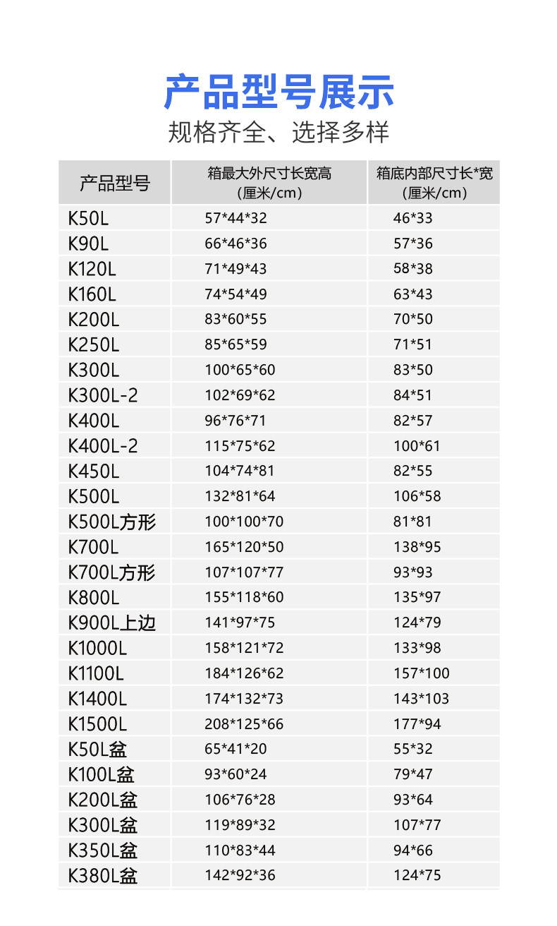 Цвет: 50L горелка 57 * 44 * 32, 90-литровый бампер длина 67 * 47 * 36, 120L Buffet Box 71 * 49 * 43, 160L горелка 74 * 54 * 49, 200л горелки 83 * 60 * 55, 250-литровый бокс бампера 85 * 65 * 61, Коробка "шведский стол" 300L 100 * 65 * 61, 400L горелка 115 * 75 * 62, 450L горелка 104 * 74 * 82, 500L Buffet Box 130 * 78 * 65, 50л бассейна "шведский стол" размер 65 * 41 * 20, 100L Buffet Bin размер 93 * 60 * 24, Размер бассейна "шведский стол" 200л 106 * 76 * 28, 300L говяжья сухожилия размером 119 * 90 * 32, 380L говядина сухожилия размером 140 * 90 * 36, 350L бассейна коробки коровы 110 * 83 * 44, 700L Boom Suites необходимо проконсультироваться с логистикой, 800L Bovy Bin нуждается в консультационной логистике, 900L Boom Suites необходимо договориться о логистике, 1000L Boom Suites нужно договориться о логистике, 1100L Boom Suites нужно проконсультироваться с логистикой, 1400 л Бовин сумки должны договориться о логистике, 1500L Boom Suites необходимо договориться о логистике, 30 литров пластиковый бак 48 * 35 * 25