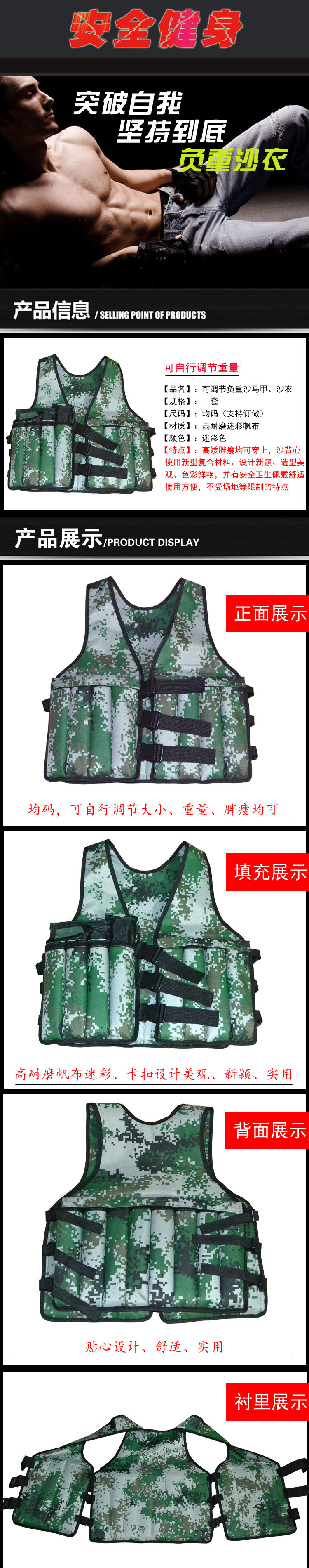 Вы можете загрузить себя, положить его в песок, сталь полосатый , Ведущий блок, рис, фасоль и другие гранулированные веса.Можно носить как жилет на открытом воздухе, передняя+задняя Всего 16 с карманами Его можно использовать для установки вещей, это также хороший выбор.