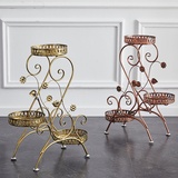 Подставка для цветов из кованого железа многослойная двухслойная мобильная подставка для цветов на колесиках гостиная подставка для цветочного горшка напольная зеленая редька подвесная полка для орхидей