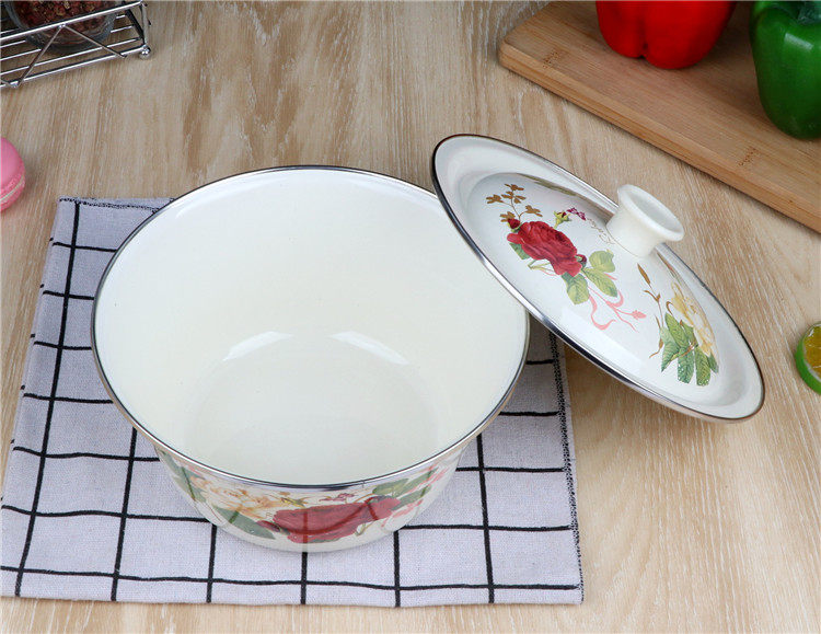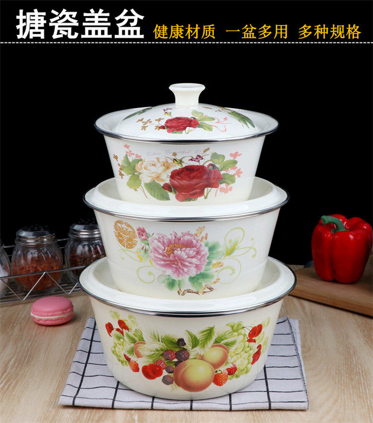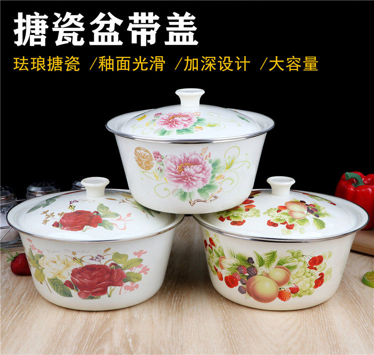 Крышка горшков Эмалевая эмалевая крышка суп -миска со старой эмалевой миской старая крышка для эмалевого горшка и пельмени на фарше