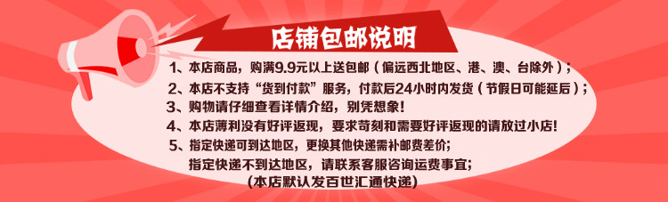 | | полностью страна бесплатная доставка по китаюДата мероприятия: 2018-10-02 14: 48: 00-2022-10-31 14:48:00 | | один Письменный заказ один полный9.9юаньбесплатная доставка по китаю( не включает в себя Почтовый район: Тибет, Гонконг, Австралия дверь , Тайвань, за границей) |