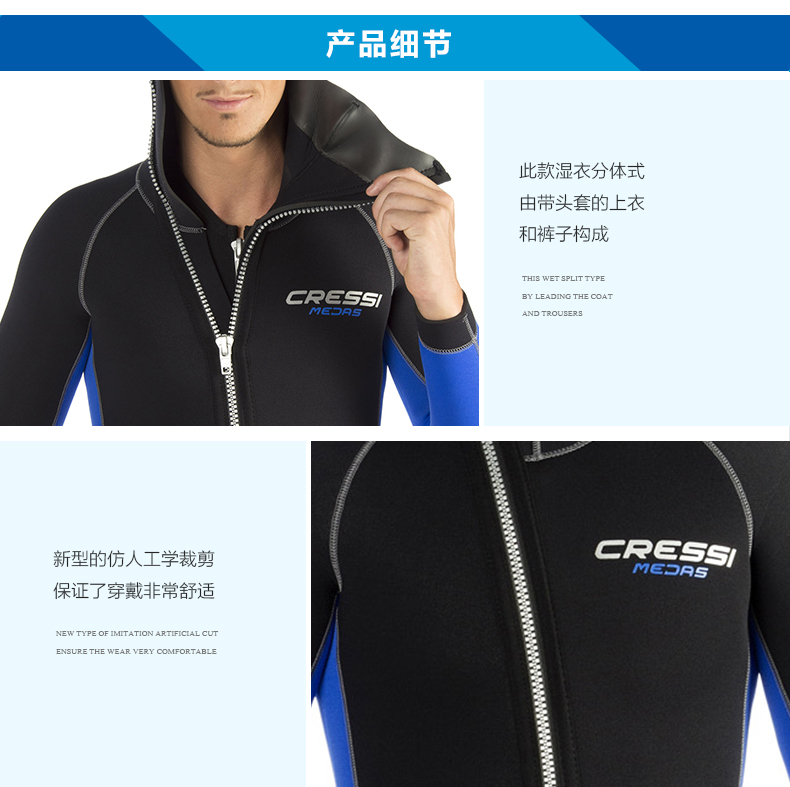Италия Кресси Медас Сплит из двух частей дайв-осадок Дит Ват 5 мм бесплатно темно Погружение мужские и женские