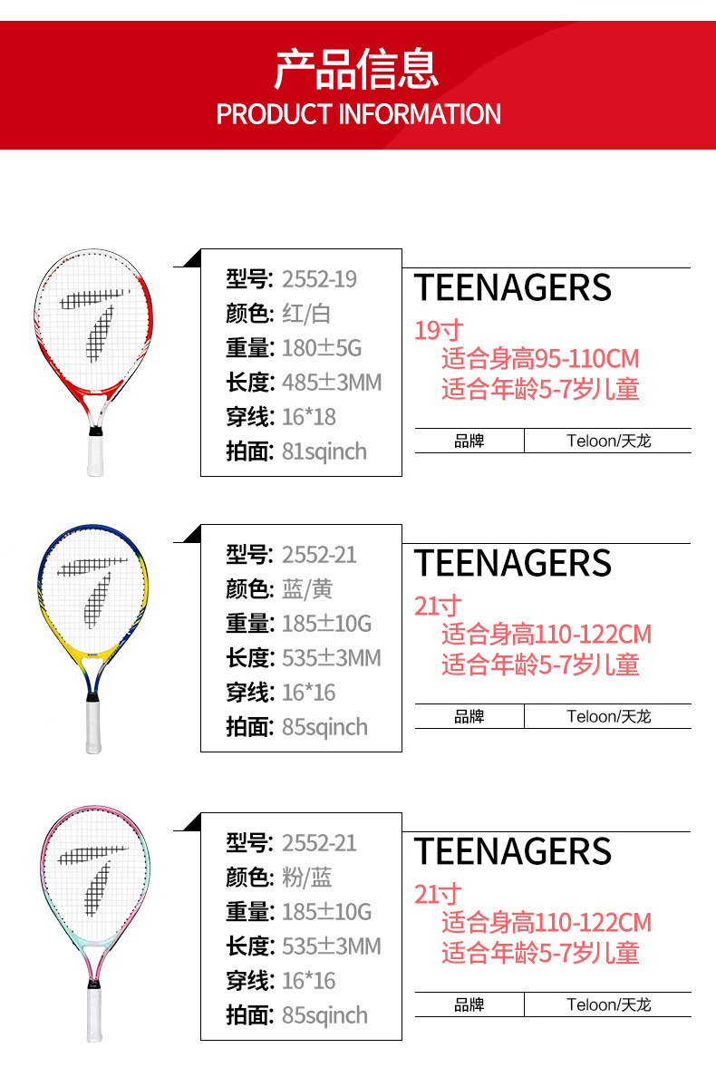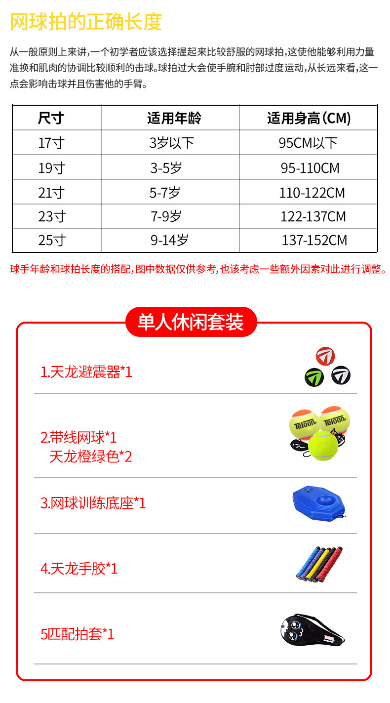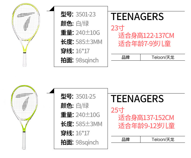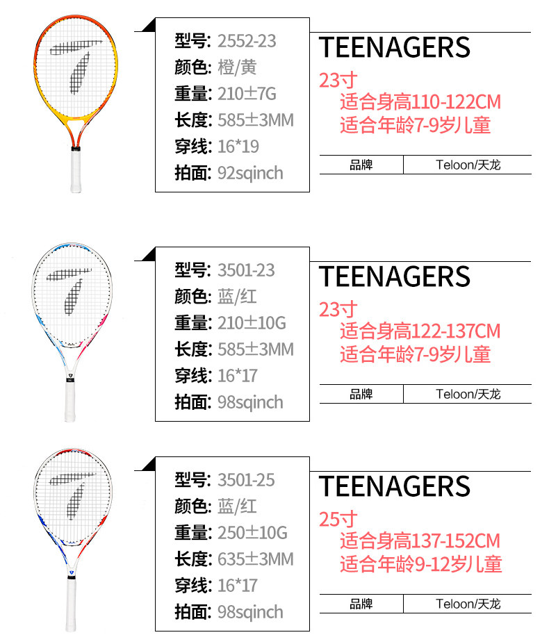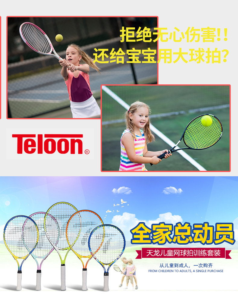 Tianlong детские Теннисная ракетка один Неутомимый комплект 3-12 лет школьники подросток 23 дюйма 25 детских садов 21 выстрел