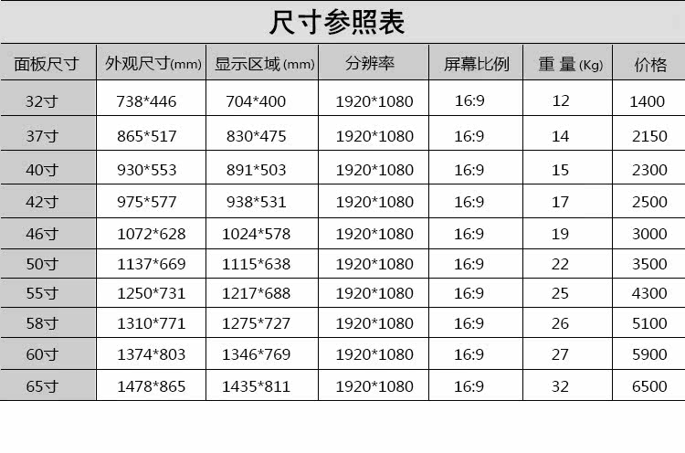 Примечание: по умолчанию цена 1650 юаней - 40-дюймовый монитор цена