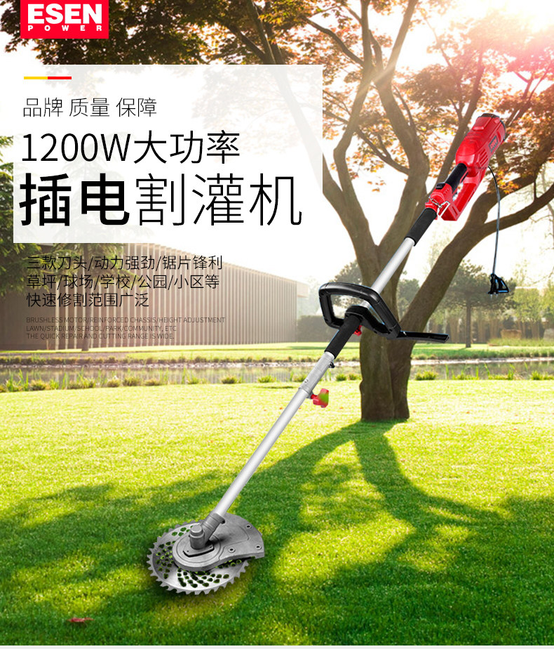 ESEN1200W Электрический режущий станок Маленькая газонокосилка Домашняя дивизия газонокожий Газона