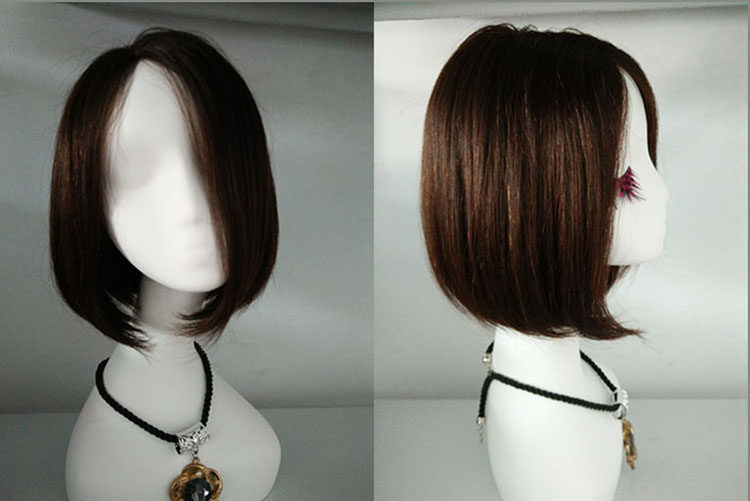 Двойной проход стрелка Парик из натуральных волос, ручное плетение, короткие волосы, бобо слева середина справа Внутри челки LOB с застежкой Поддельные головные уборы из настоящих волос