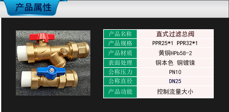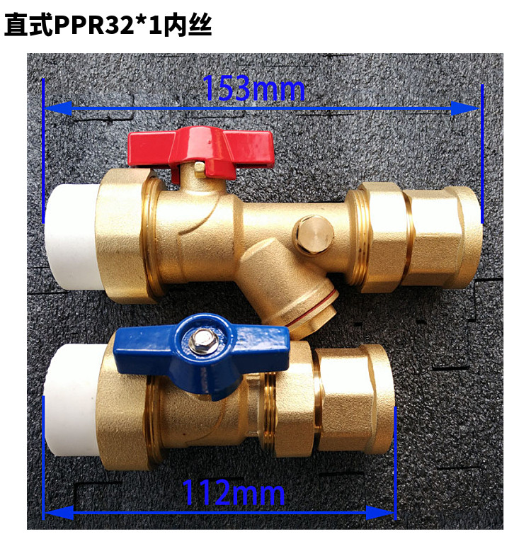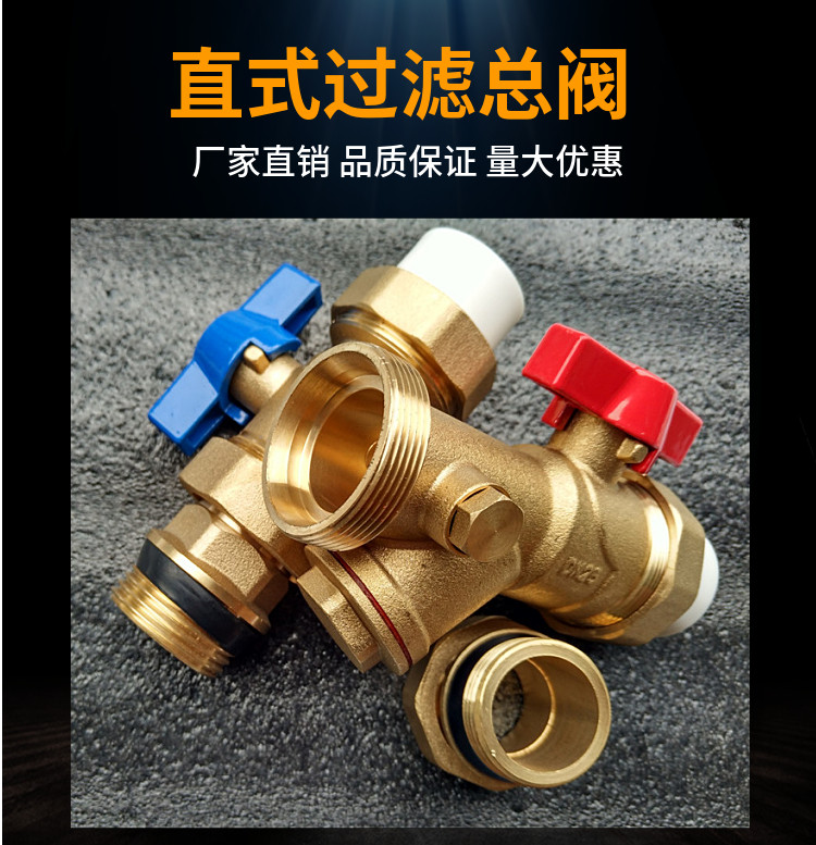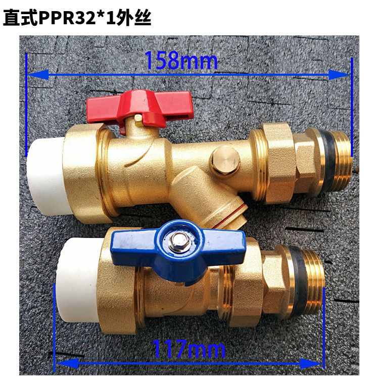 Прямой PPR32 Внутренний проволочный фильтр Шаровой клапан Водоотеченного коллектора Тотальный клапан Пол Нагревательный клапан дверь Звуковая тепловая труба переключатель латунь