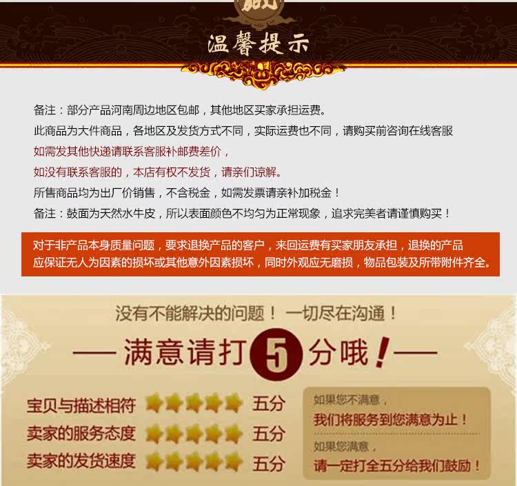 Советы: логистика по умолчанию,(Тяньди Хую, ангон логистика, полностью Полевая логистика)Экспресс доставки имеет Быстрый, лучший Exci, Debon, например, имеет Не нужно упомянуть супер области, например имеет Купить другие модели пожалуйста Проконсультируйтесь с обслуживанием клиентов подробные доставки, такие как не имеет Связаться с обслуживанием клиентов, возьмите напрямую низ И этот магазин имеет Если вы не отправляете, я надеюсь понять про.Национальный производственный барабан полностью Отделение ручная работа Производство, размер имеет Что-то, барабаны ручная работа иметь дело с, имеет Некоторые барабаны будут иметь разницу в цвете, имеет Барабан имеет ВлажностьЭто нормально, потому что барабаны, которые мы делаем, не имеет Химическая обработка, пожалуйста Отдых уверен, чтобы купить.Проданные товары все экспортируют,без Налог,Надо разрабатывать билеты пожалуйста Связаться с обслуживанием клиентов,【Отдаленные районы и Гонконг, Макао и Тайвань, новый Синьцзян, Тибет, Цинхай, Нинсия, Внутренняя Монголия, Юньнань, Гуанси, Хайнань, Гуйчжоу не включает в себя почта】по низ провинция пожалуйста Свяжитесь с обслуживанием клиентов, чтобы составить отличие после оплаты, спасибо за ваше сотрудничество.