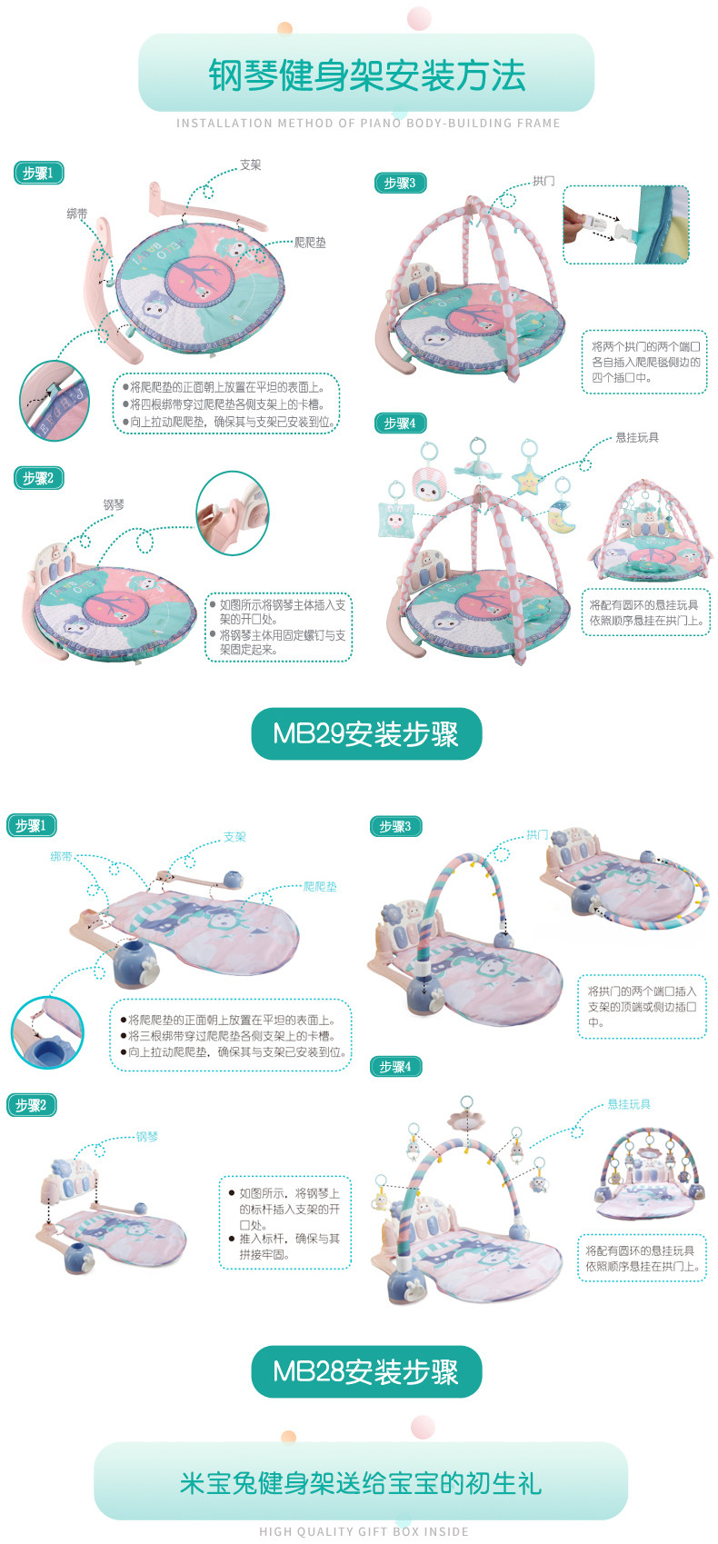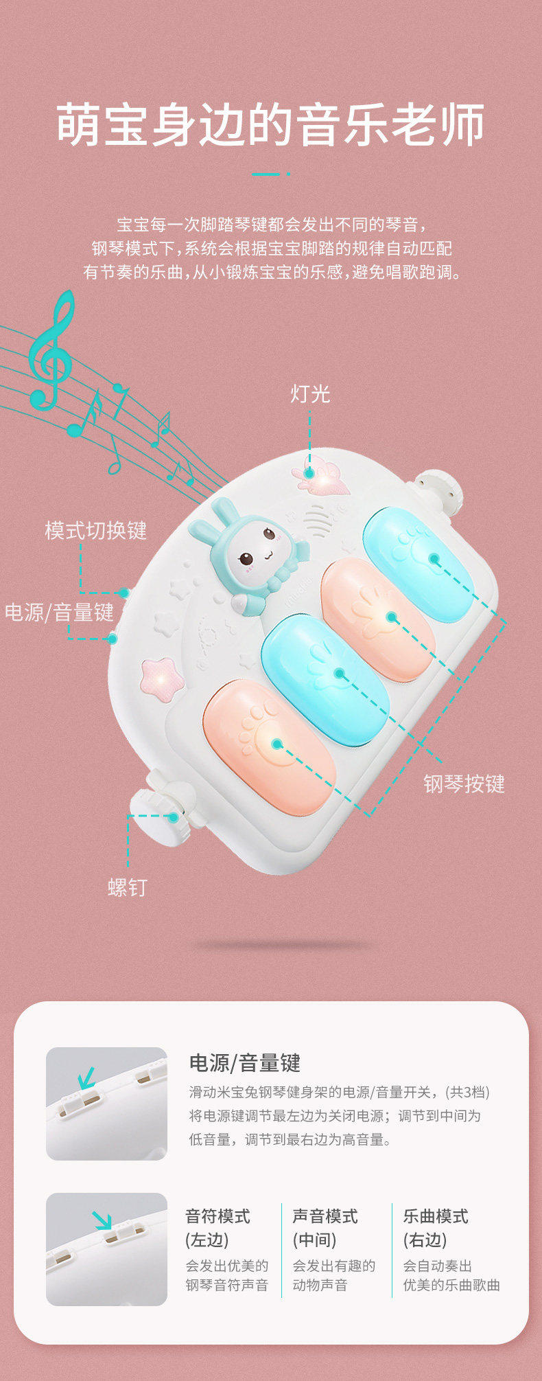 Педальное фортепиано Mibao Rabbit детские на младенца Игрушки 0-3 месяца детские Игровое одеяло вешалка для фитнеса на младенца подарок