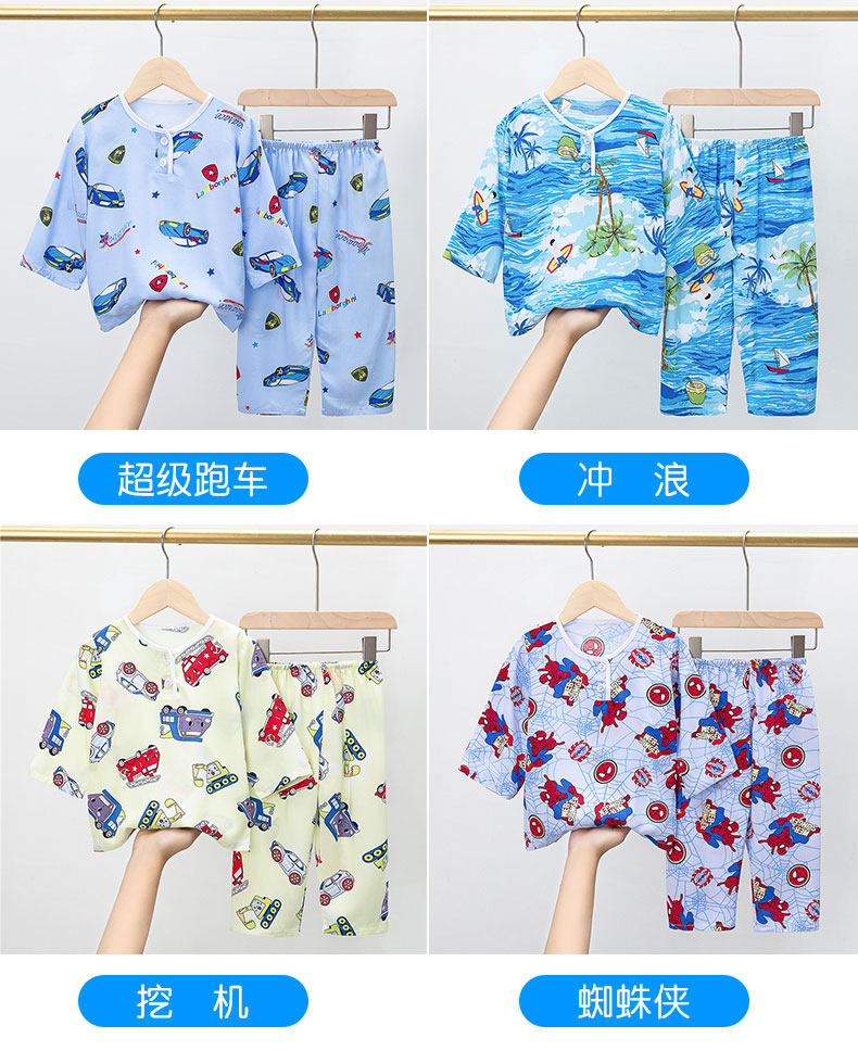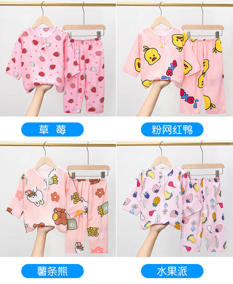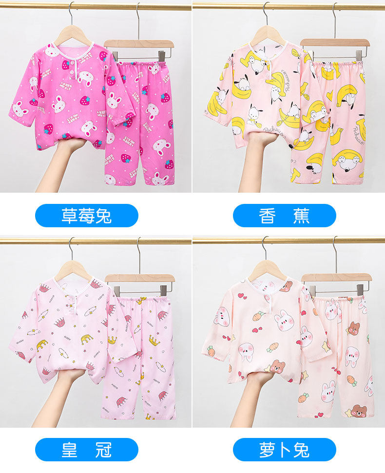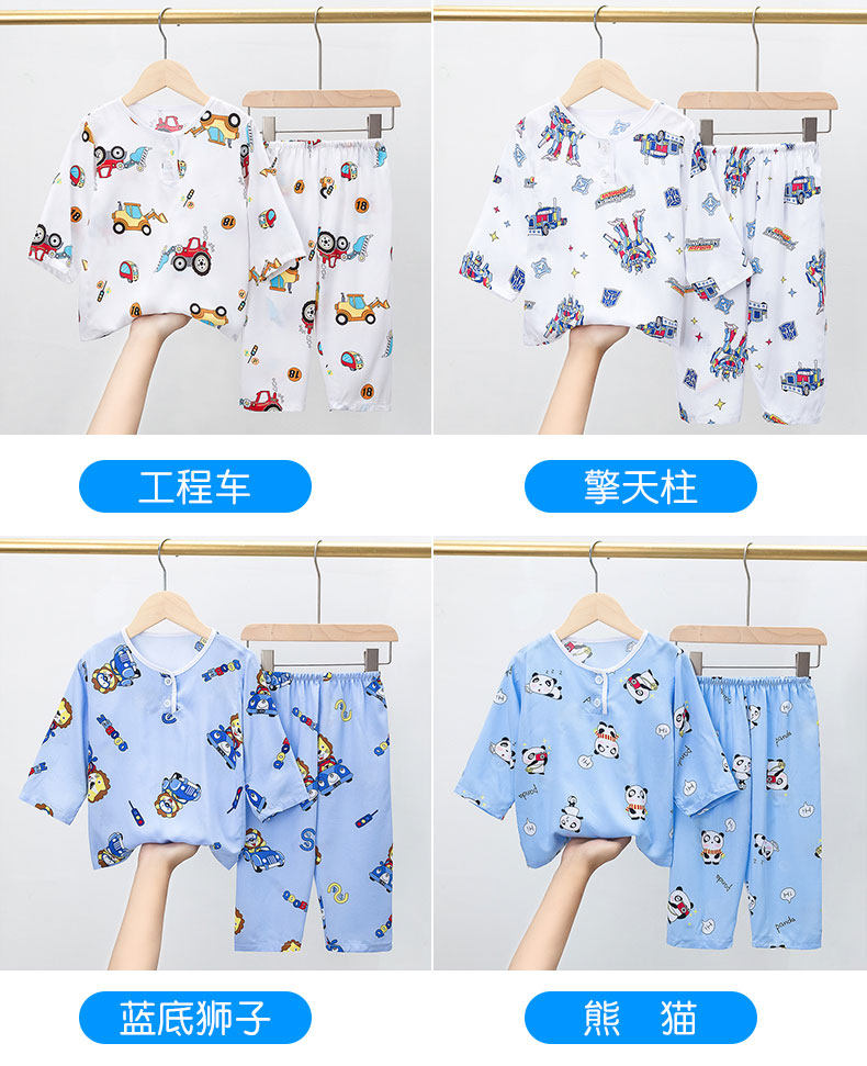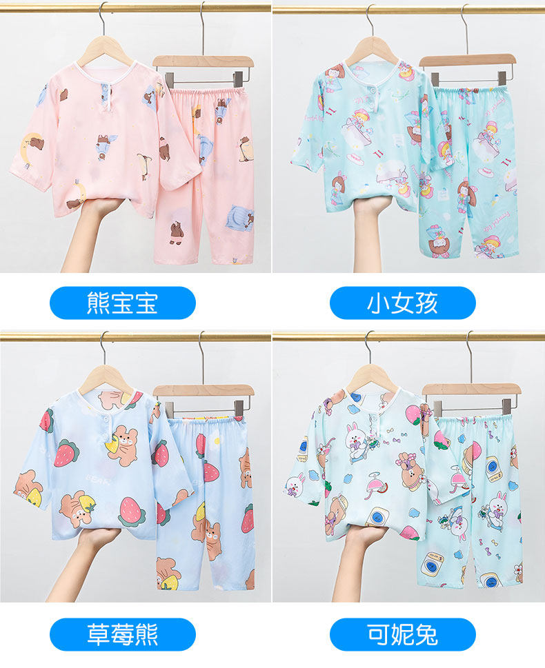 Лето хлопок шелк детские пижама комплект Тонкий стиль Большой на девочку мужской Девочка длинный рукав Домашняя служба с кондиционером детские