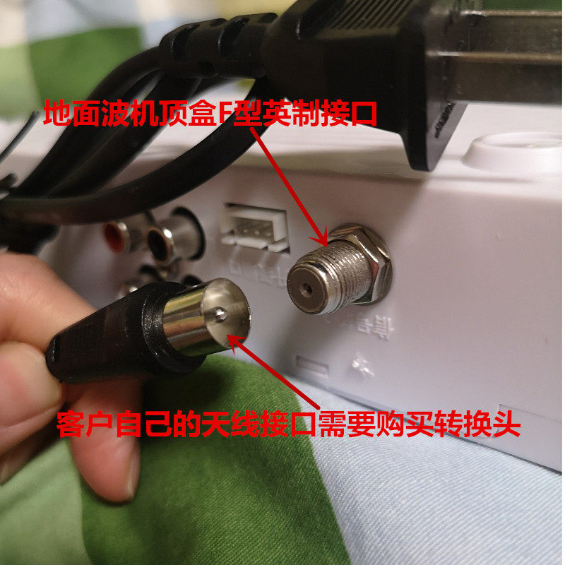 Дружественное напоминание: интерфейс за приставкой наземного вещания является полностью британским интерфейсом F-типа, если собственная антенна покупателя - гнездовая ТВ【РФ женский】Такой как низ Изображение: Нужно купить ссылку на преобразователь головы за 1 юань:https://item.taobao.com/item.htm?id=530641776370&spm=2014.21600712.0.0