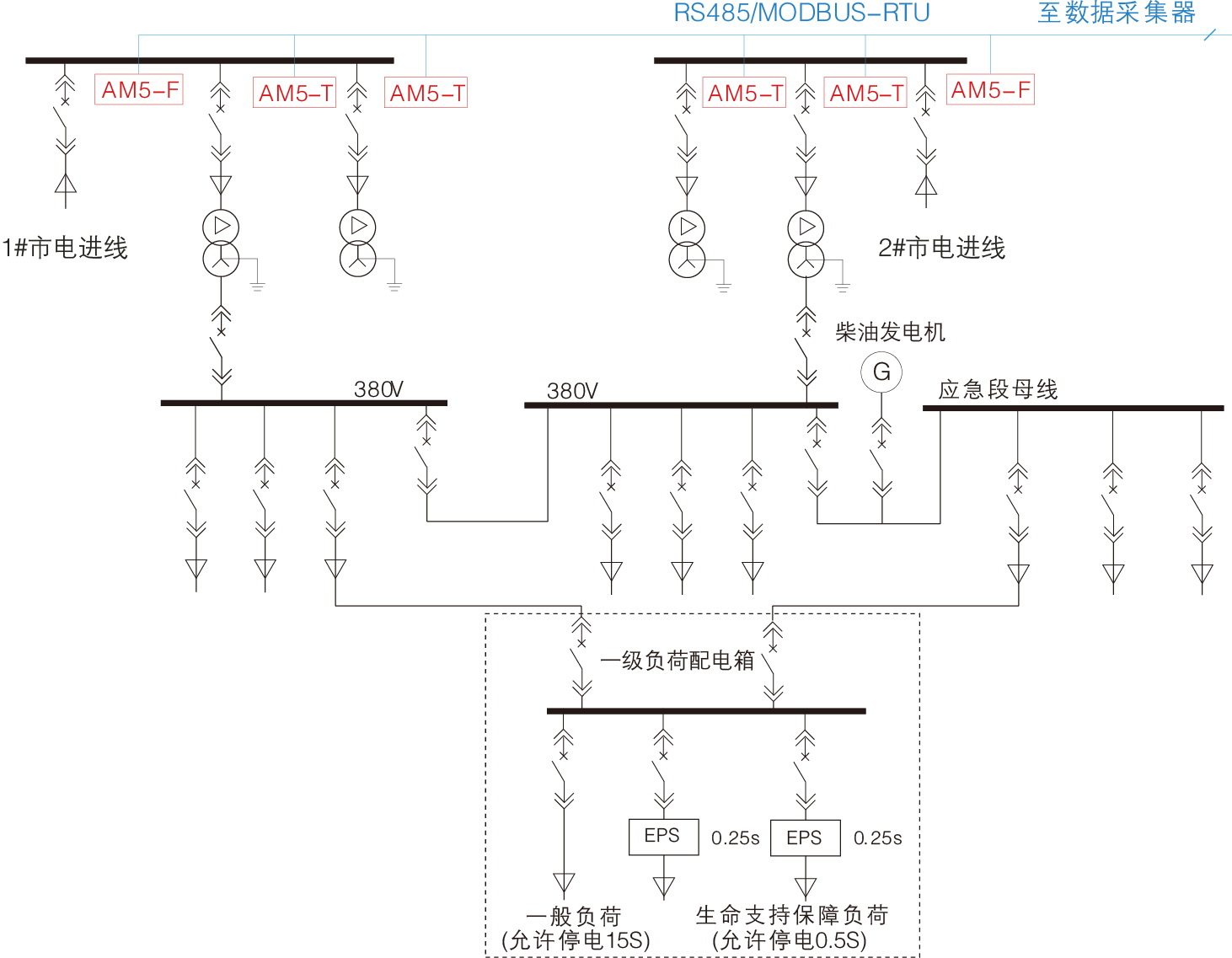 При использовании одного мастера и одного резервного двойной аккумулятор При питании от источника можно использовать шину. один Способ подключения секции шины, резервное питание устанавливается на выключателе шины. автоматическая Вставьте устройство, как только основной источник питания потеряет питание, он может мгновенно переключиться на резервный источник питания.Первичная проводка и конфигурация защиты следующие: верх Фигура. мама гарантия Защитное устройствоAM5-BКроме матери гарантия В дополнение к функциям защиты, измерения и управления, он также имеет функции автоматического ввода, такие как взаимный ввод входящих линий, и автоматический ввод резервной копии материнской платы. Этот вид источника питания подходит для производственных предприятий или производственных предприятий, которые могут привести к большим экономическим потерям из-за перебоев в электроснабжении. один Немного.