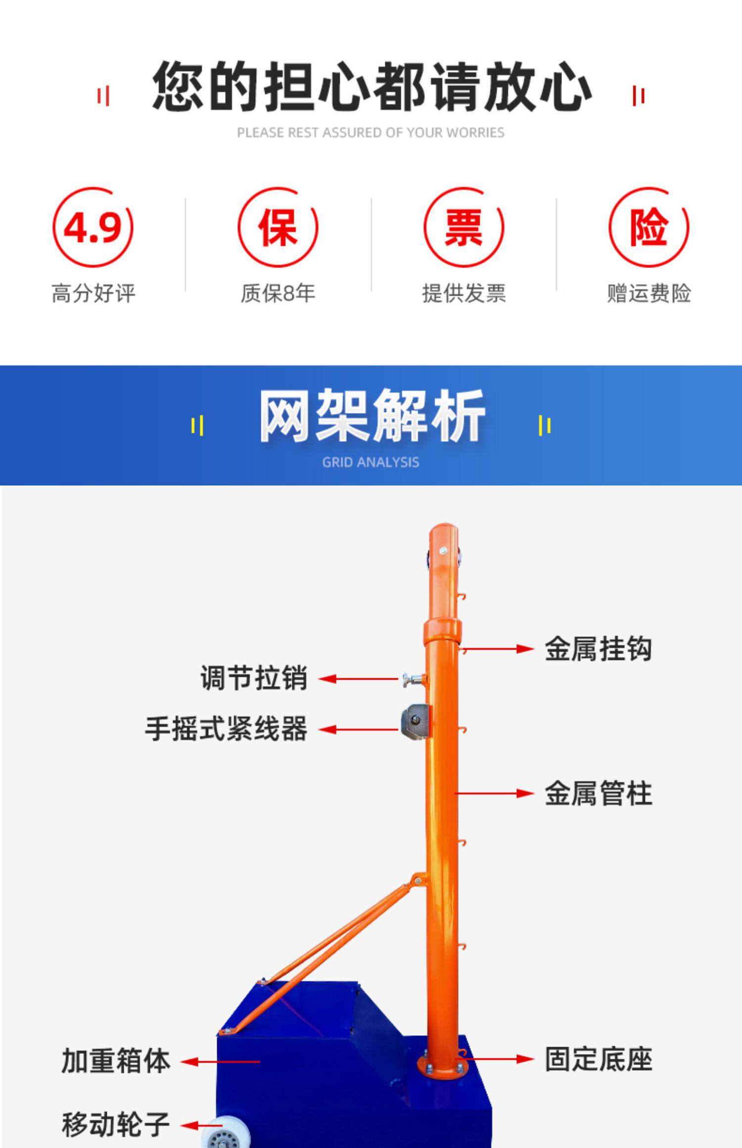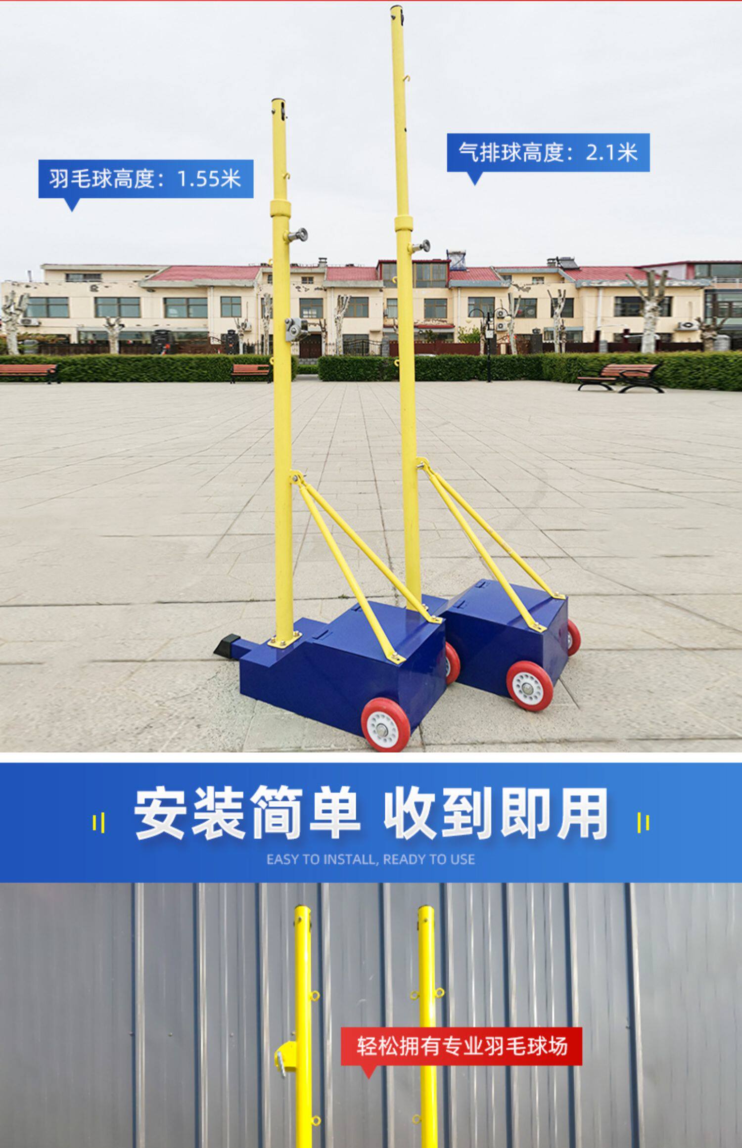 - Многофункциональность голубой Волейбольная чистая колонна + волейбольная сеть
