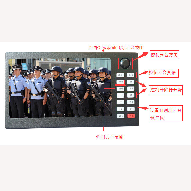 Используйте 4 управления клавиатурами и 7 -дюймовым газом два -in -One; 1 -йVGAвысокая Ввод разрешения и 1 коаксиальный двойной вход BNC; Может управлять различными функциями камеры Gimbal,Если открыта компенсация подсветки камеры/Равный Может выполнять операции передачи для интеллектуальных камер в кардах,Гладкий, кардинг слева справа С верх и низ Контроль и зеркало Верхние изменения и т. Д.; Настройки заданного точка могут быть установлены на камеру Gongtai,передача.Можно установить3Предустановка имеет Ведомый красный за пределами свет Контроль с стеклоочистком,Может контролировать подъемный стержень и Поддержка контроля уровня клавиатуры. |