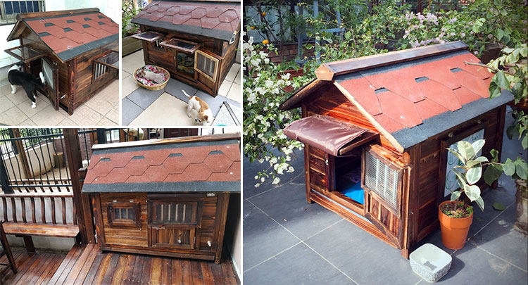 Сплошная древесина собака крытый дождь домашнее животное гнездо на открытом воздухе зима удерживающий тепло Дом собаки Большая собака водонепроницаемый Четыре сезона