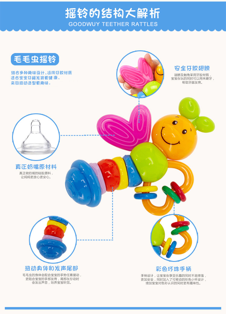 Gu Yu Teether Rattle для малышей детские Игрушки 0-1 лет новый Рожать на младенца Игрушка пазл 0-3-6-12 месяцев