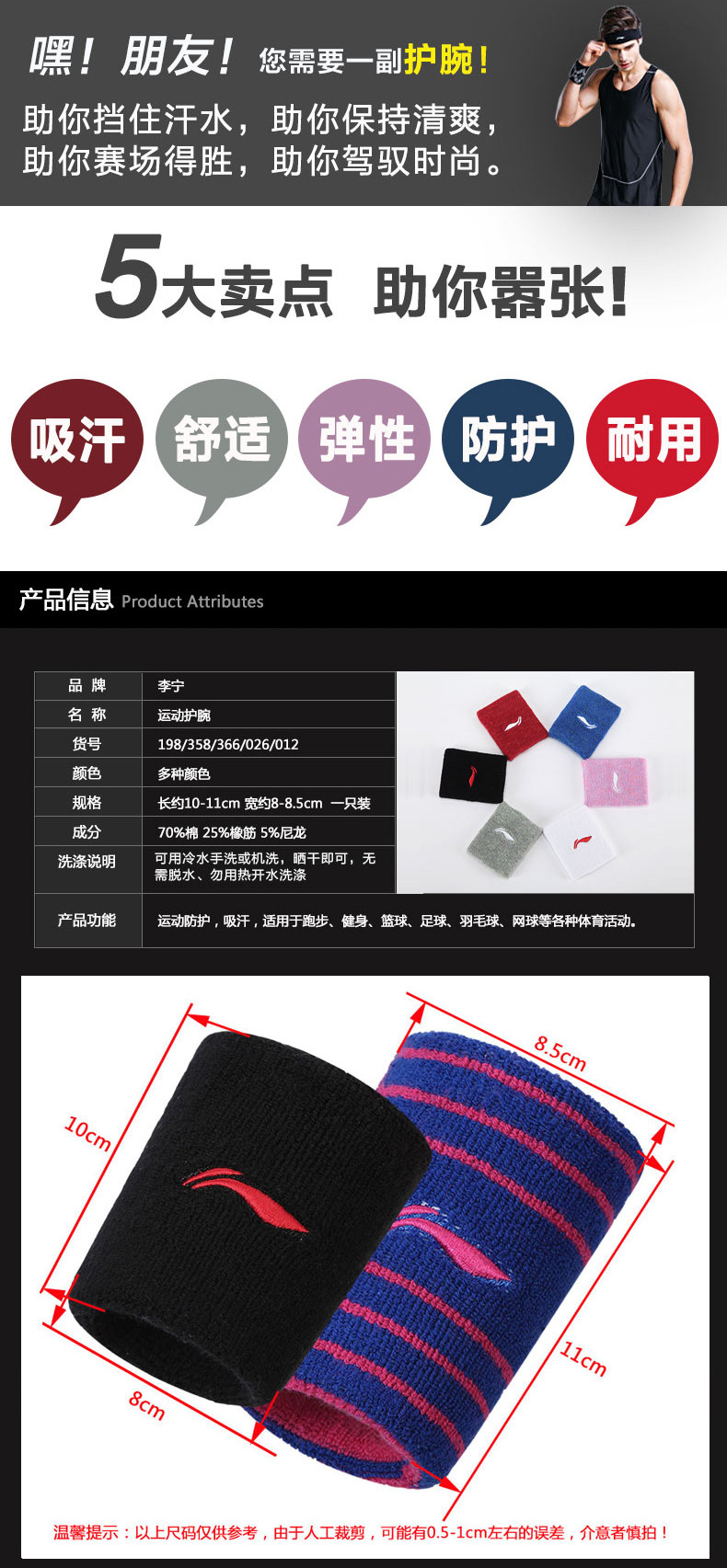 Впитывающий пот браслет Li Ning мужской Бадминтон запястье растянутый футляр женский впитывающий пот фитнес-волейбол летний тонкий стиль баскетбол
