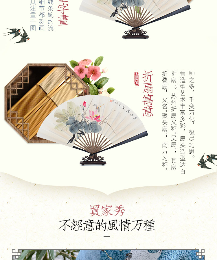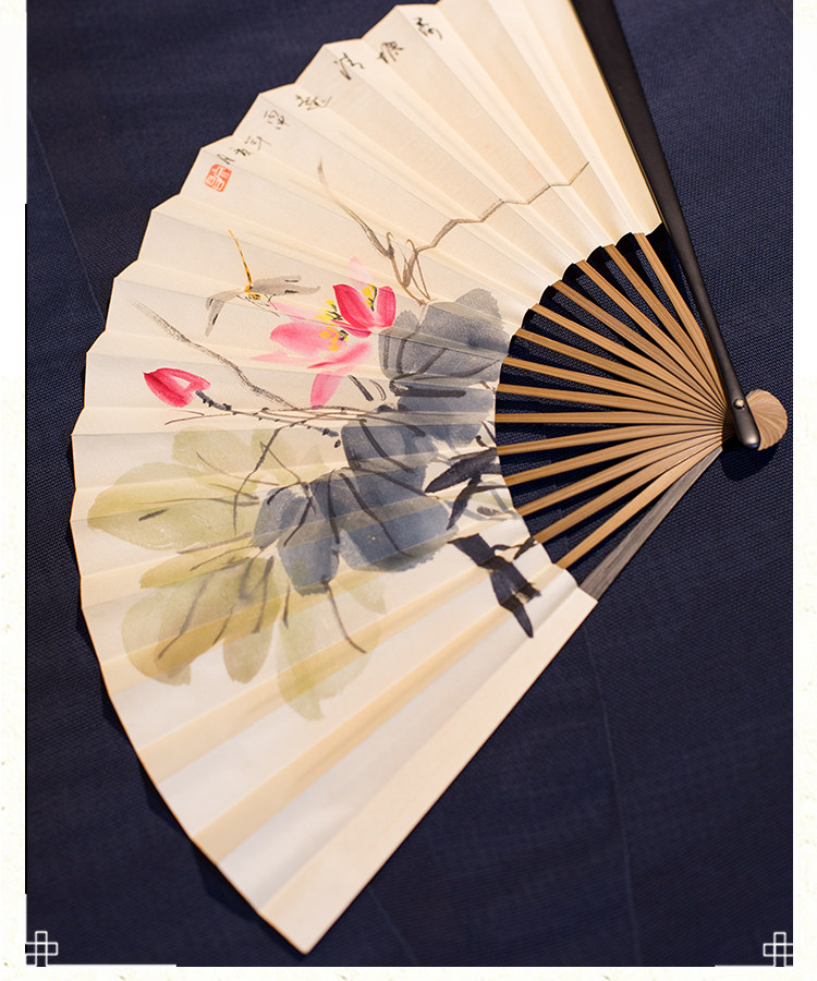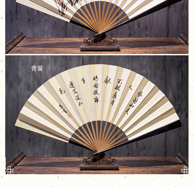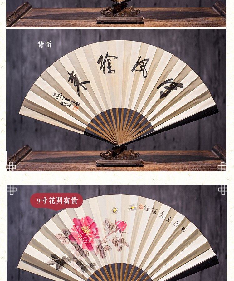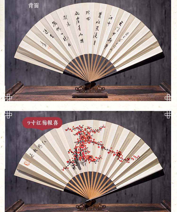 Сан-Юэ длинный двухсторонний шелк 9 дюймов мужской Вентилятор Pair Подарочная коробка Вентилятор Китайский стиль, окрашенный вручную