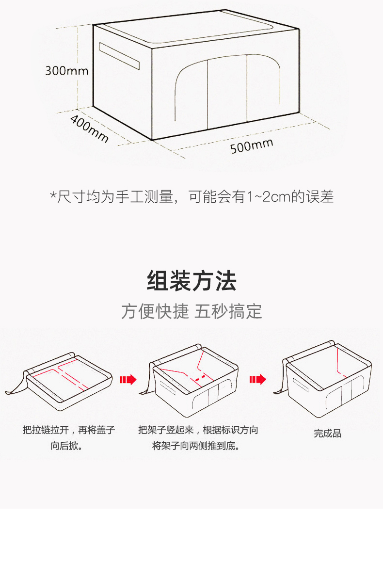 Весело с застежкой весело с застежкой Ящик для хранения Оксфордская ткань со складыванием Baihua Box Одежда для хранения коробки для хранения Bina Box Большой ящик для хранения