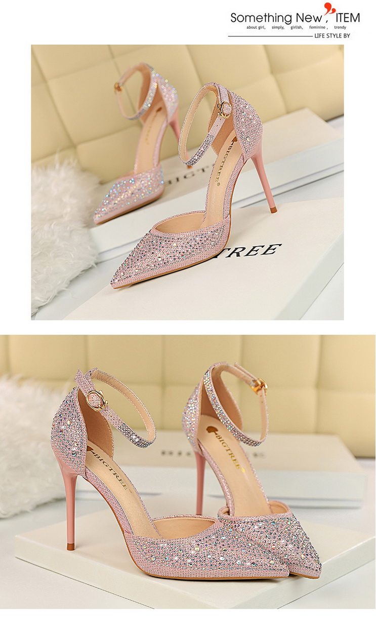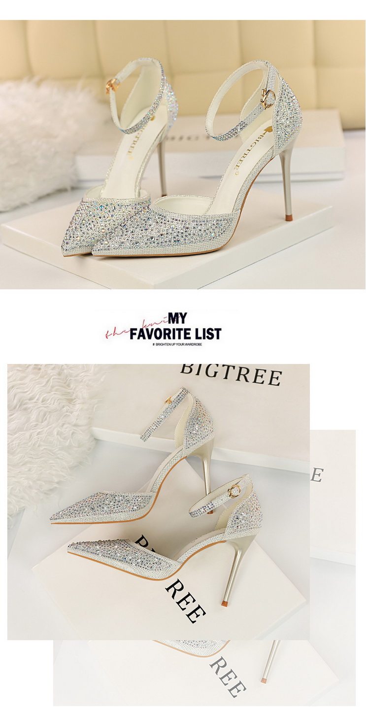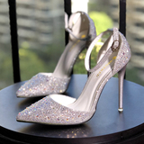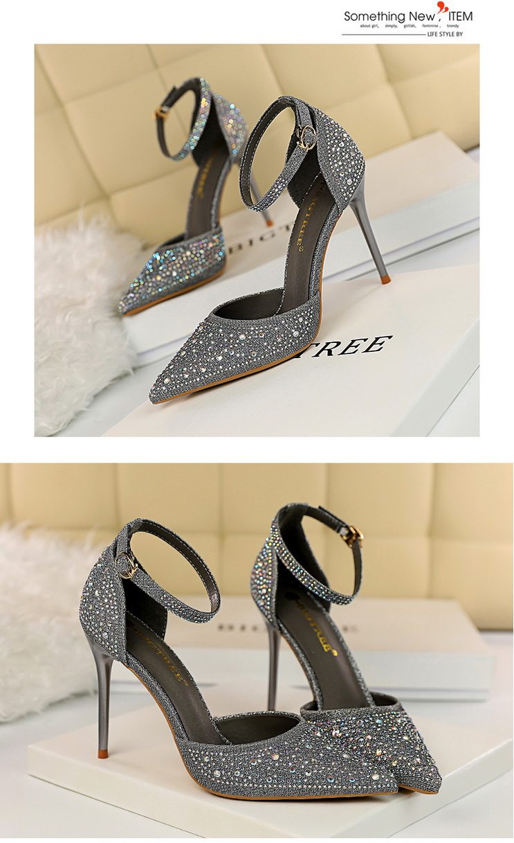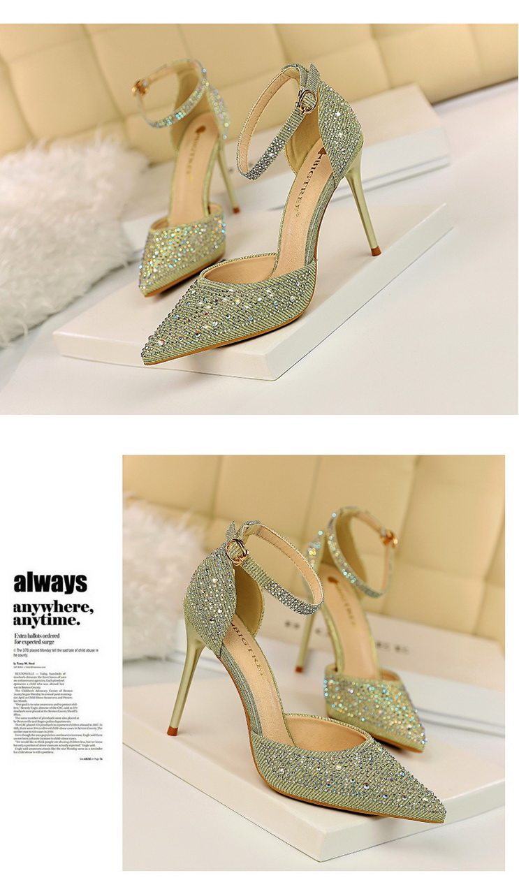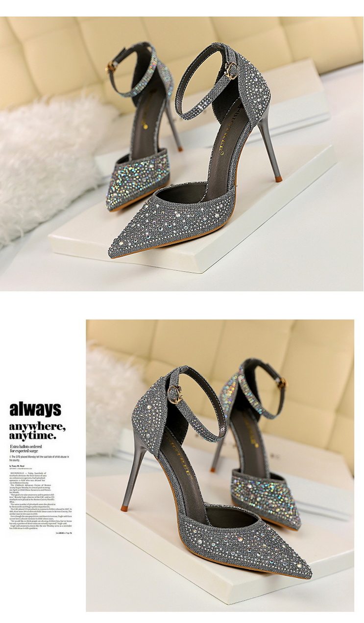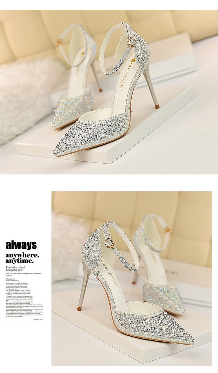 2021 новая коллекция Горный хрусталь с острым носом Пустой серебряный кристалл с застежкой группа на высоком каблуке Туфли женские сандалии all-match one слово группа туфли с застежкой