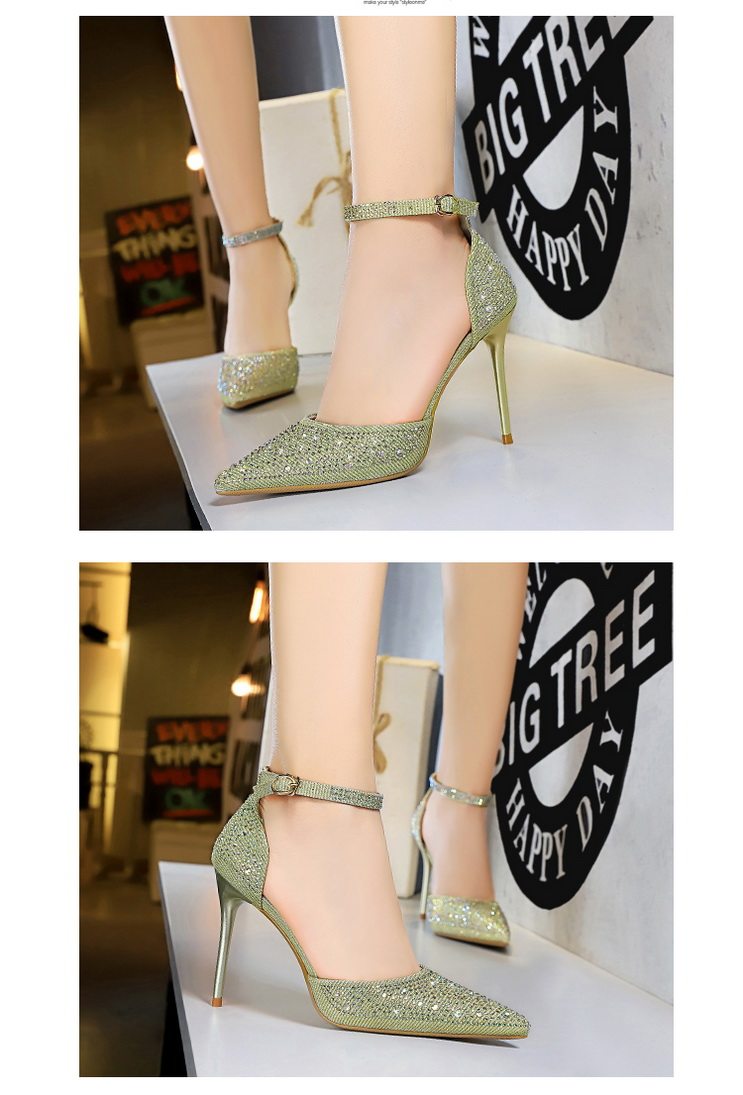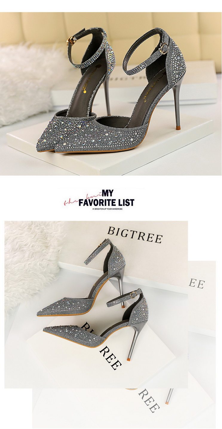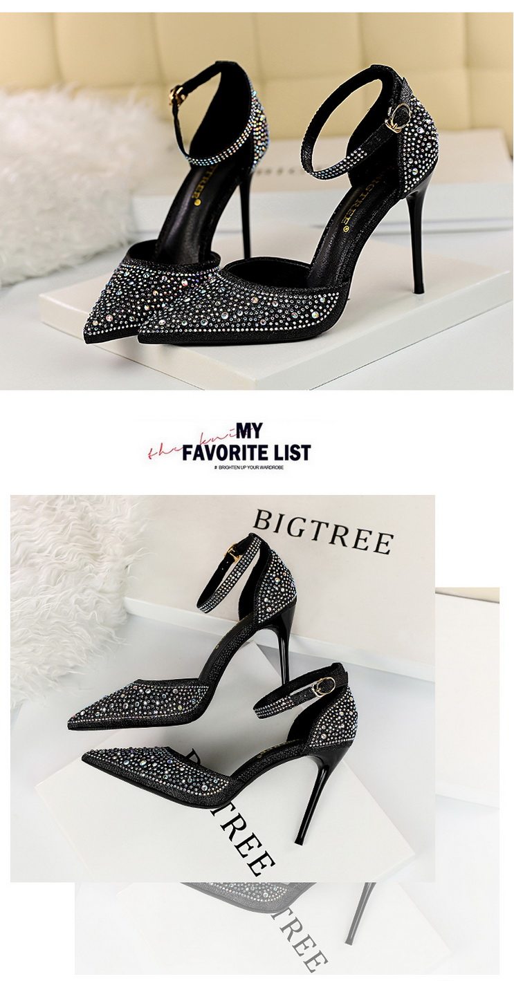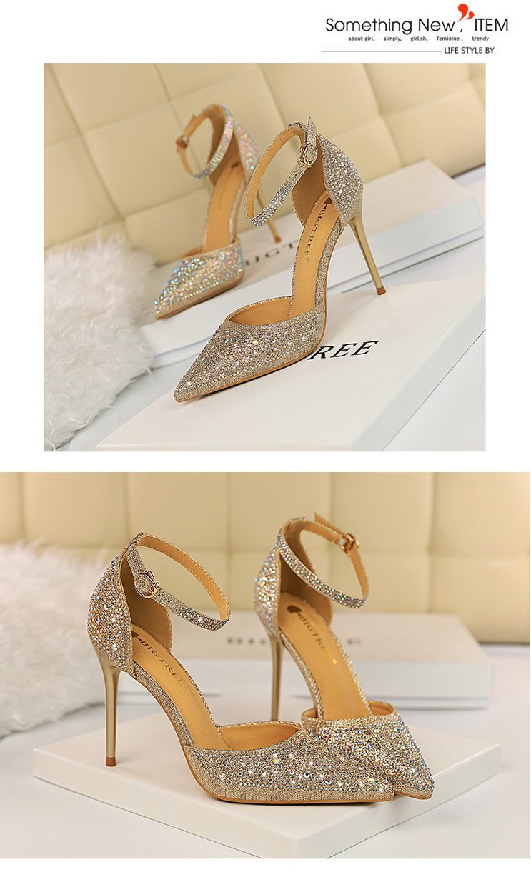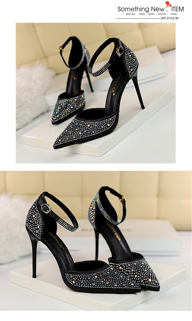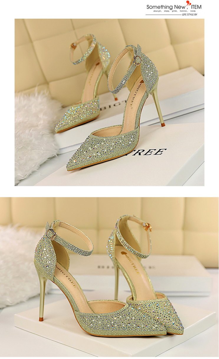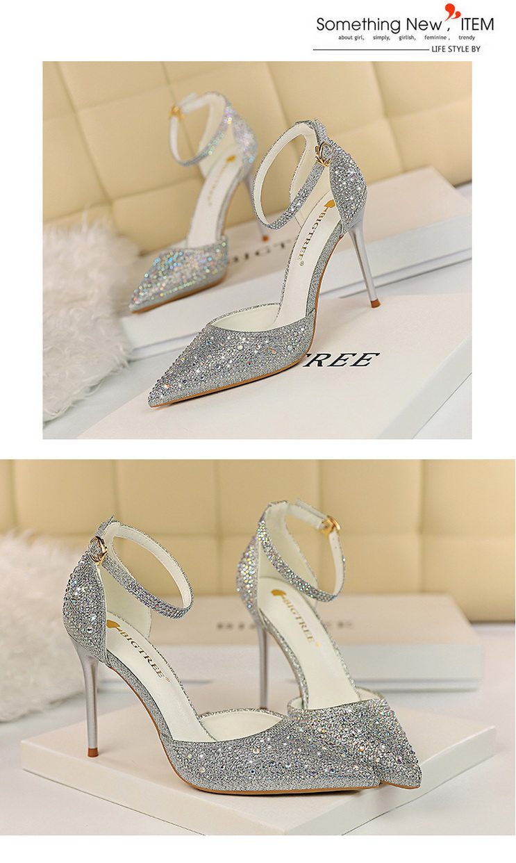 2021 новая коллекция Горный хрусталь с острым носом Пустой серебряный кристалл с застежкой группа на высоком каблуке Туфли женские сандалии all-match one слово группа туфли с застежкой