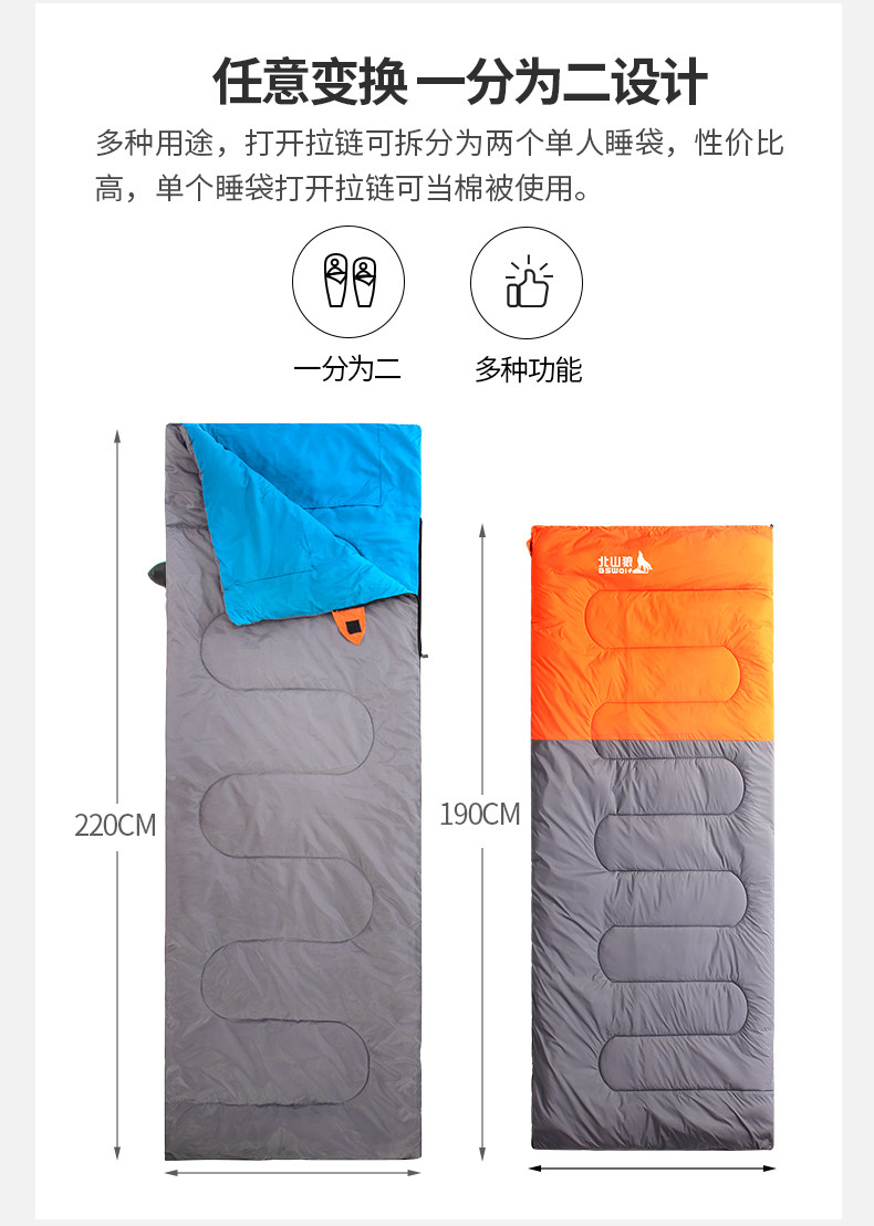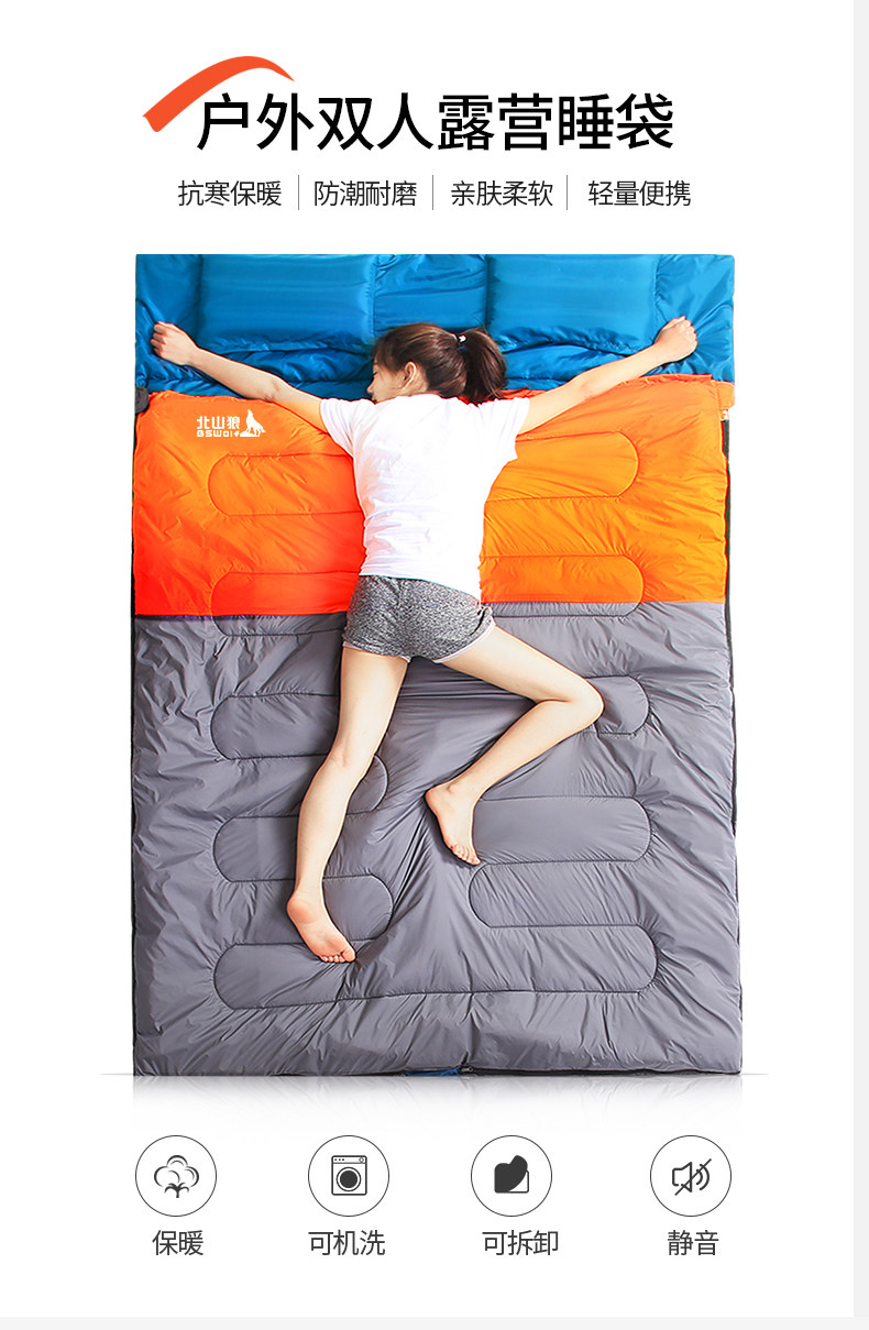 Открытый двойной спальный мешок Beishan wolf для влюбленной пары широкая утепленный Защита от холода осень-зима удерживающий тепло Комната для кемпинга один Перегородка у взрослых