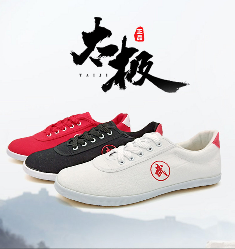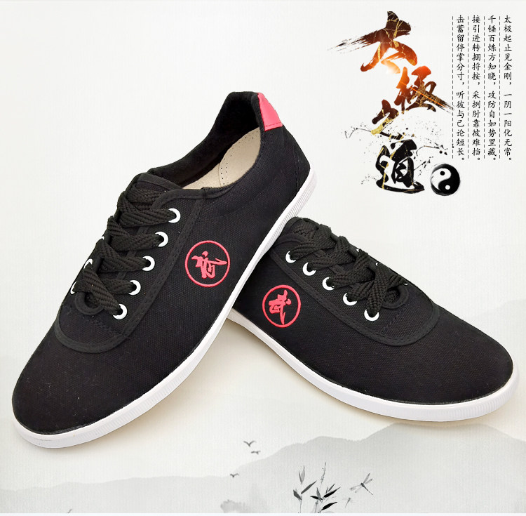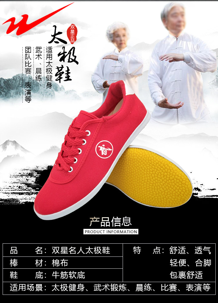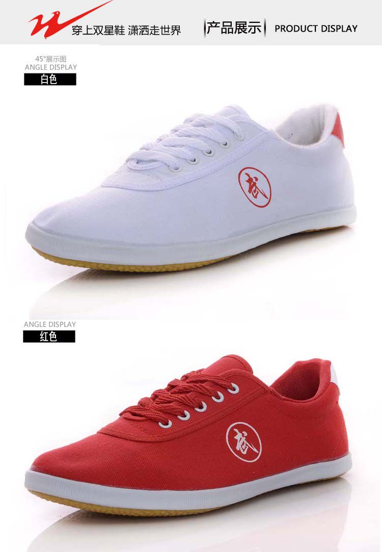 Двойные звезды боевые искусства обувь холст черный красный белый Утреннее обучение мужские и женские Спортивная обувь слово