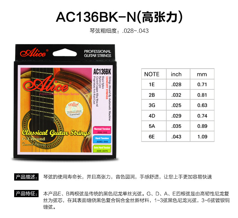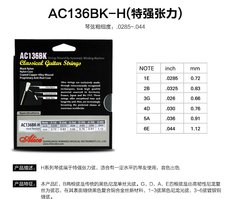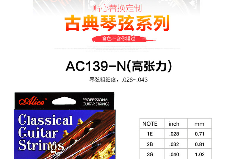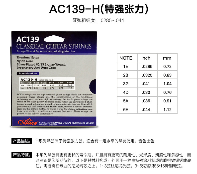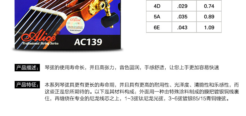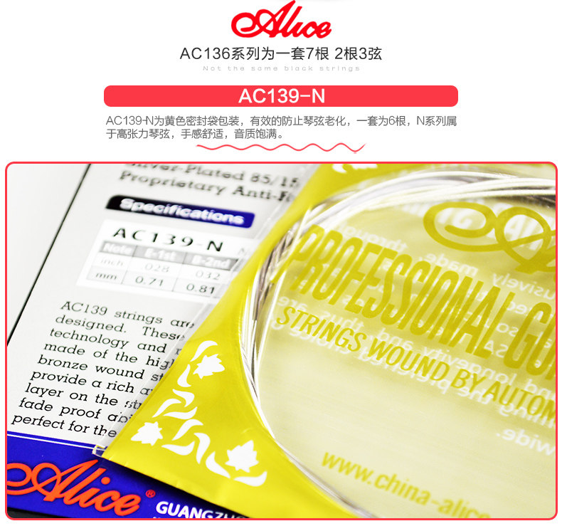 Оригинал Алиса древней классический Гитарная строка AC139 / 136/130 / A108 серебро Фосфор бронза классический Гитарные струны
