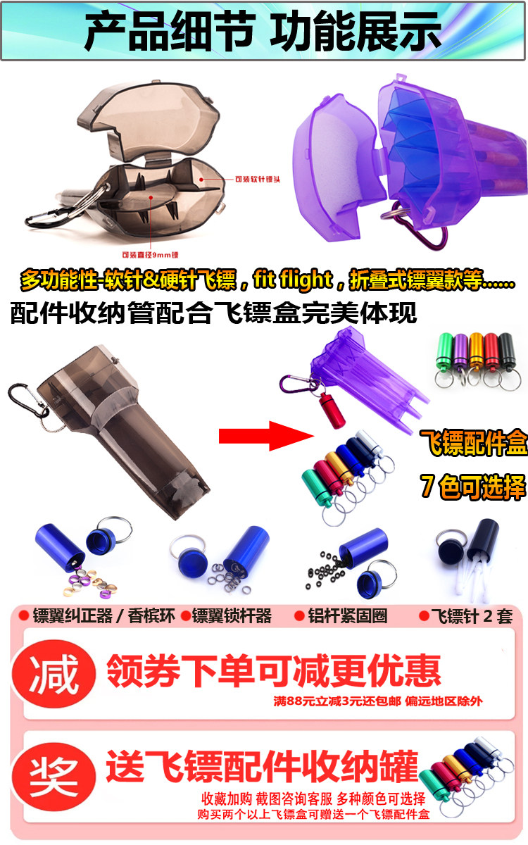 【Область применения】Коробка для дротиков выполнена как единое целое с разумным внутренним дизайном.--Может быть установлен целикоммягкий стрелка Или жестко стрелкаДартс(С крылом дротика&дротик стрелка&Дротик-бар), Легко взять дротикИдеальная защита дартс и пользователей,Доступен в 7 цветах
