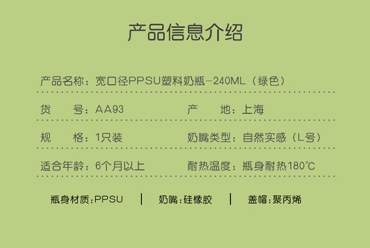 Голубь голубь на младенца Широкий рот PPSU бутылка Green 240ML оснащен L номер 1 копия Крытая натуральная инспекция