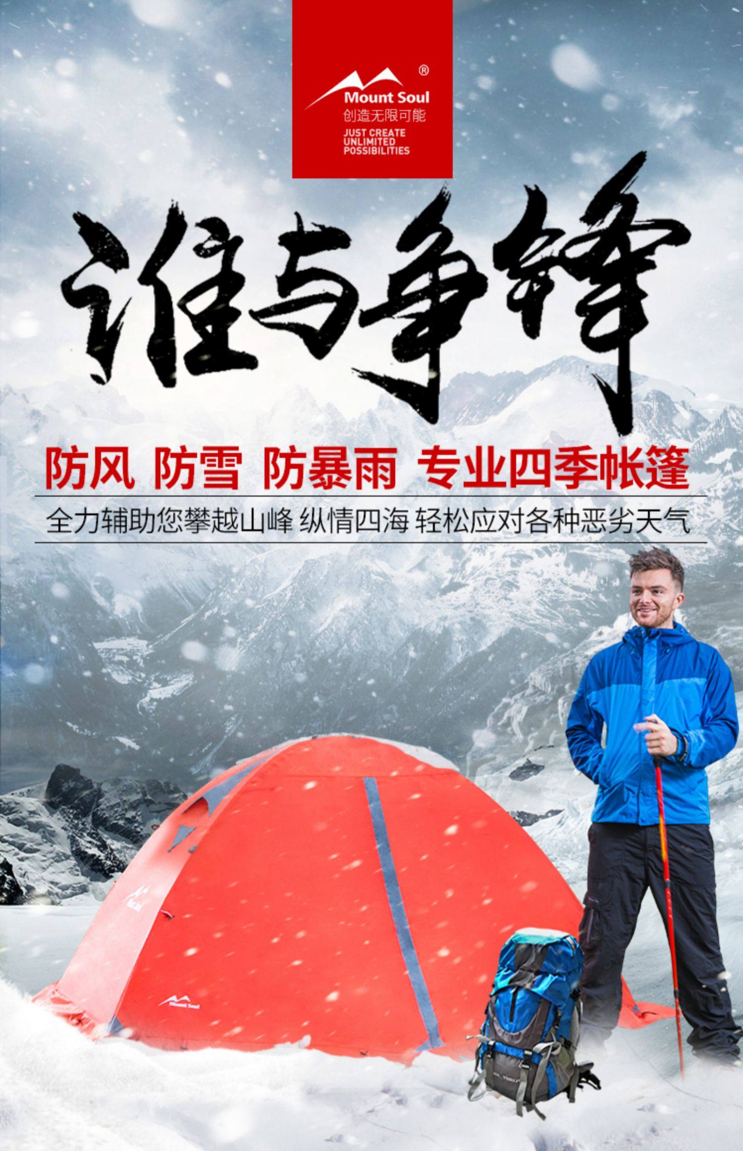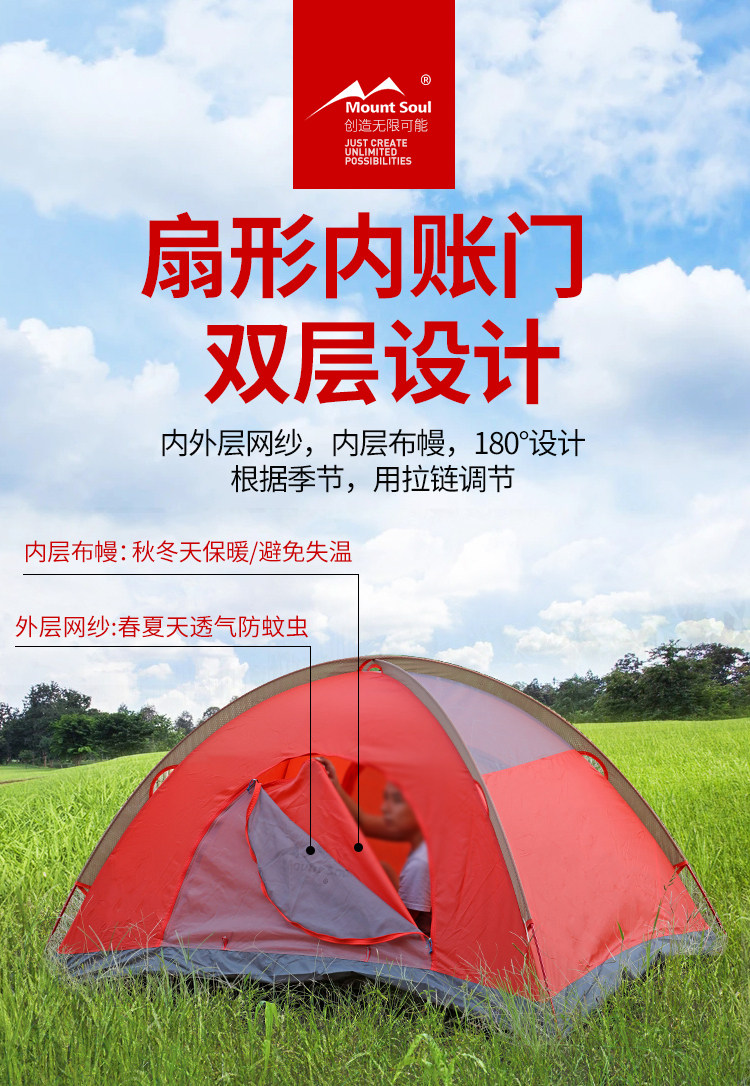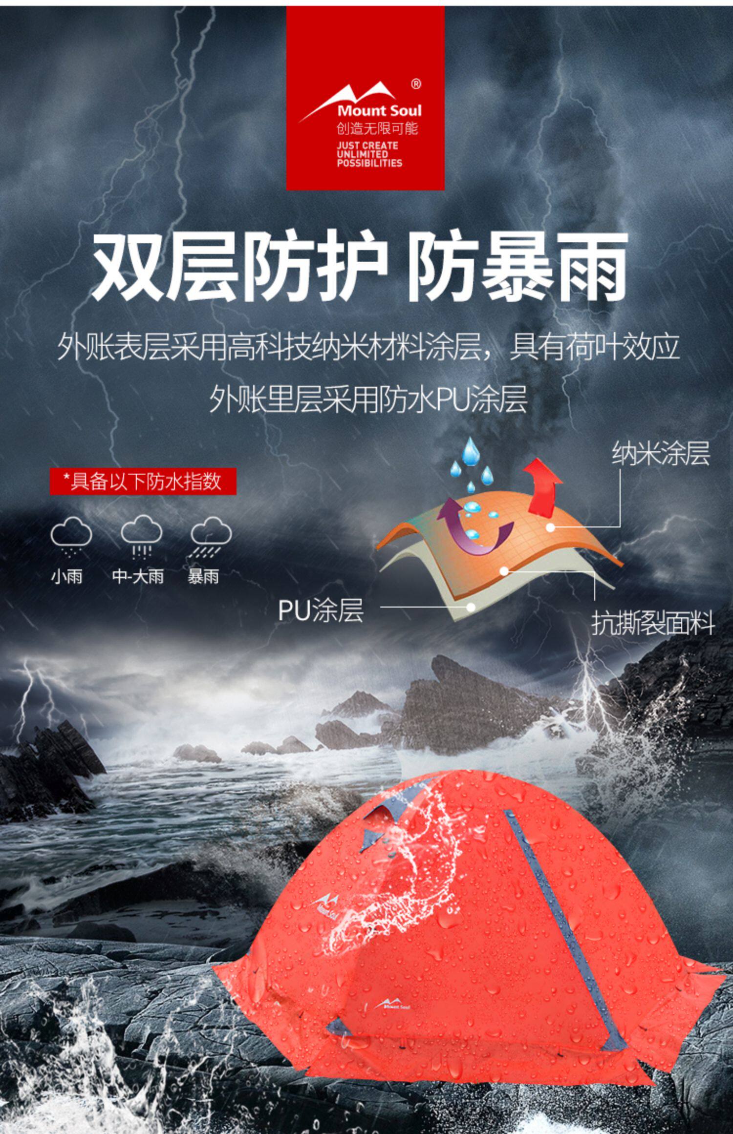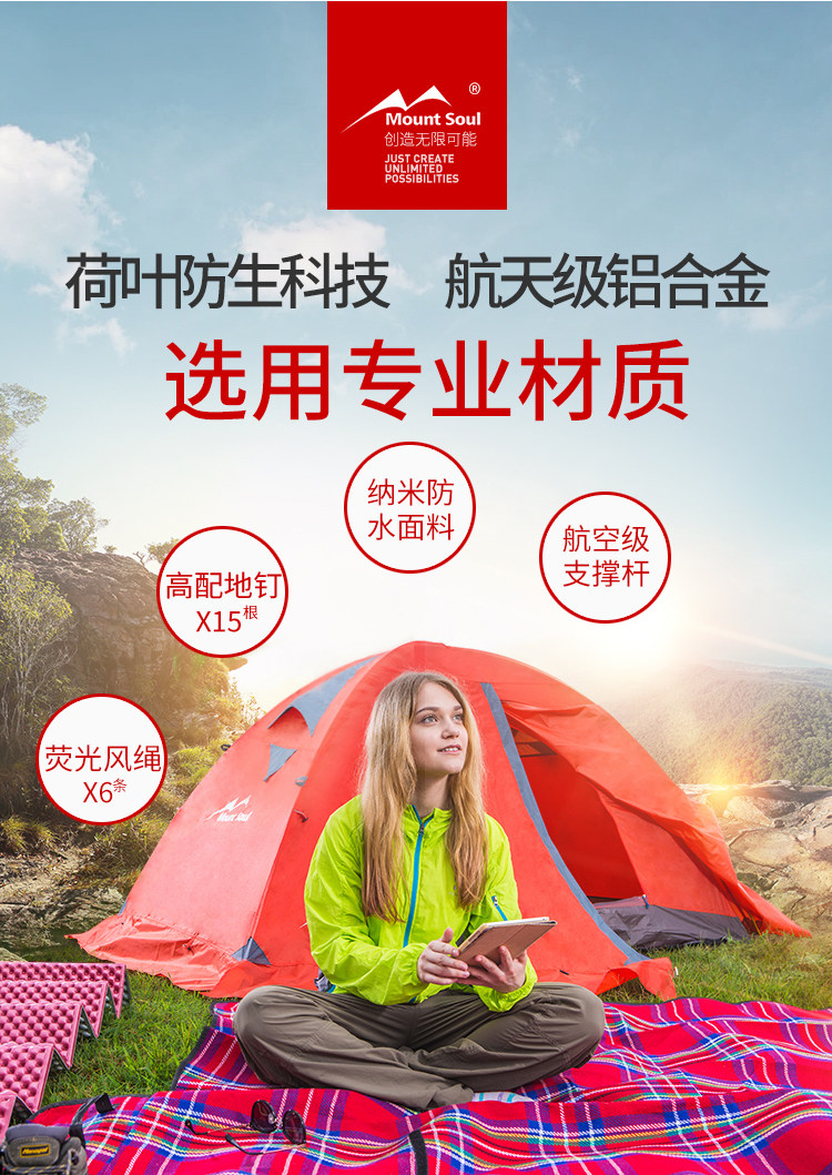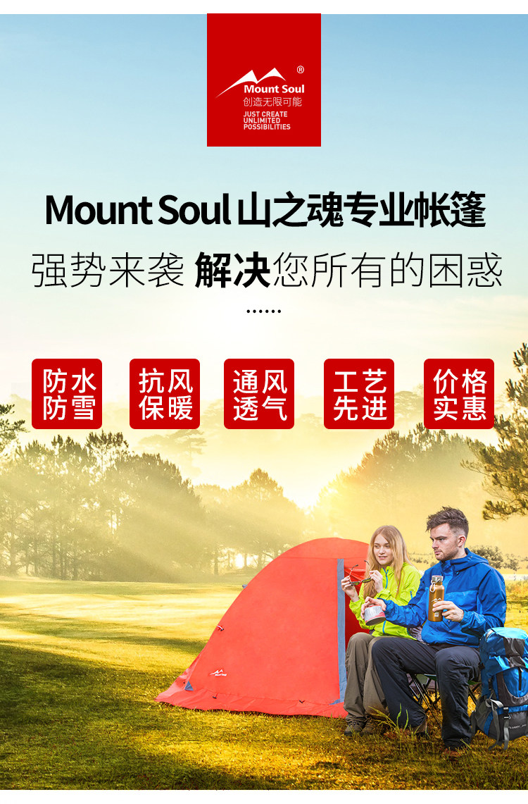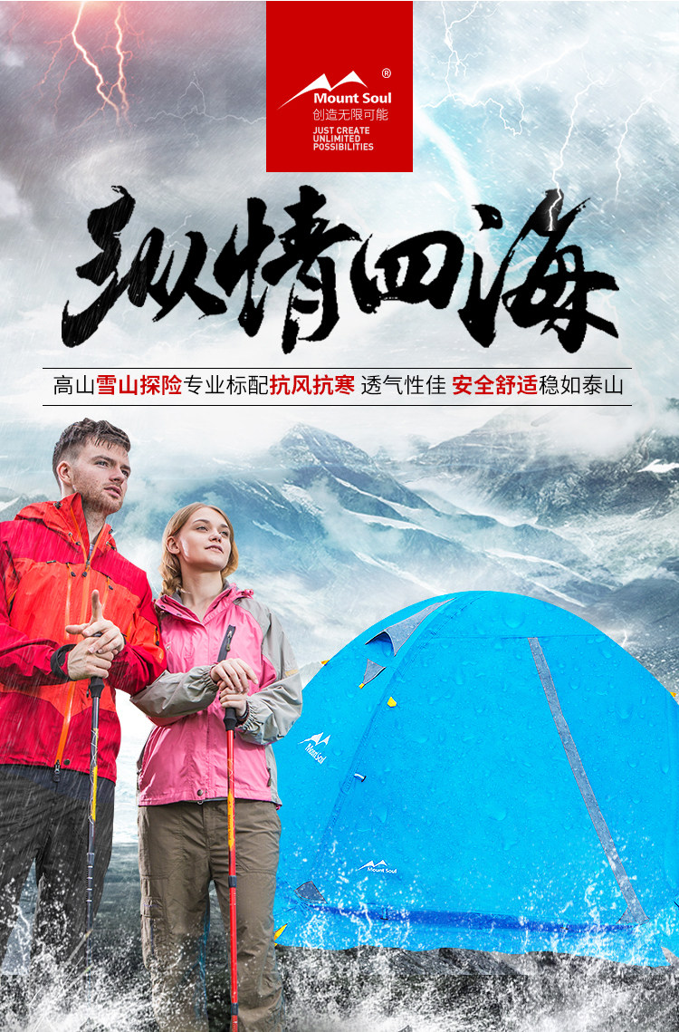 Mountsoul Mountain Soul Professional Four Seasons Открытый Deep Camp 2 3-4 Люди Двойной утепленный Анти-бунт-палатка дождя