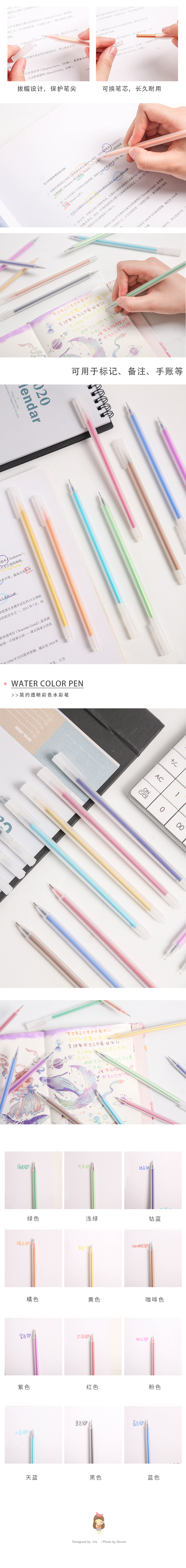 Второй класс за три года корейский Канцелярские товары простые и прозрачные ноутбук вода цвет ручка разноцветный Ручка гелевая ручка 0,5 мм водная ручка