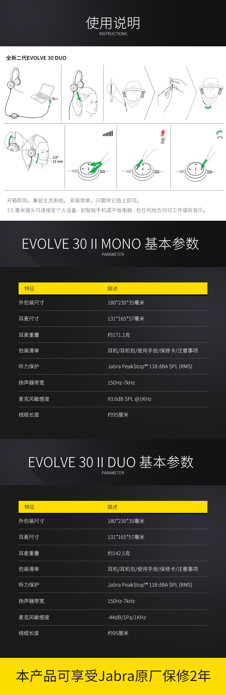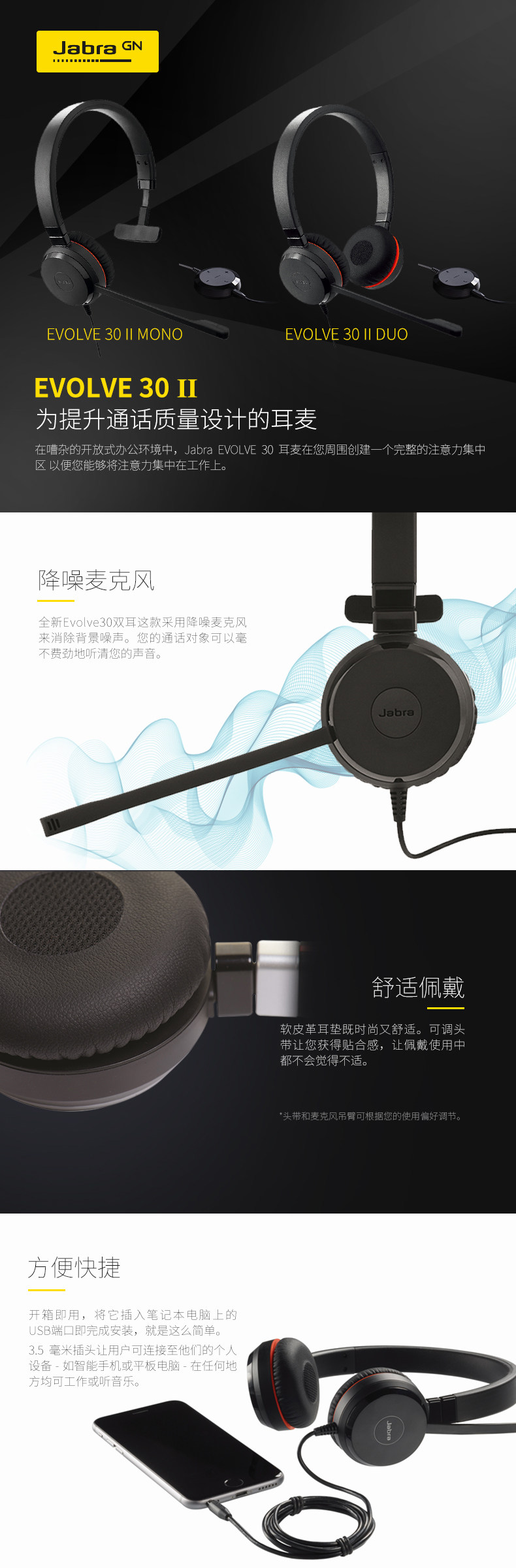 Jabra / Jabra Evolve 30 II 40 USB + 3.5 мм Управление линией один Ушное двойное ухо