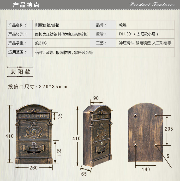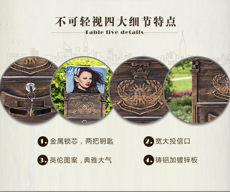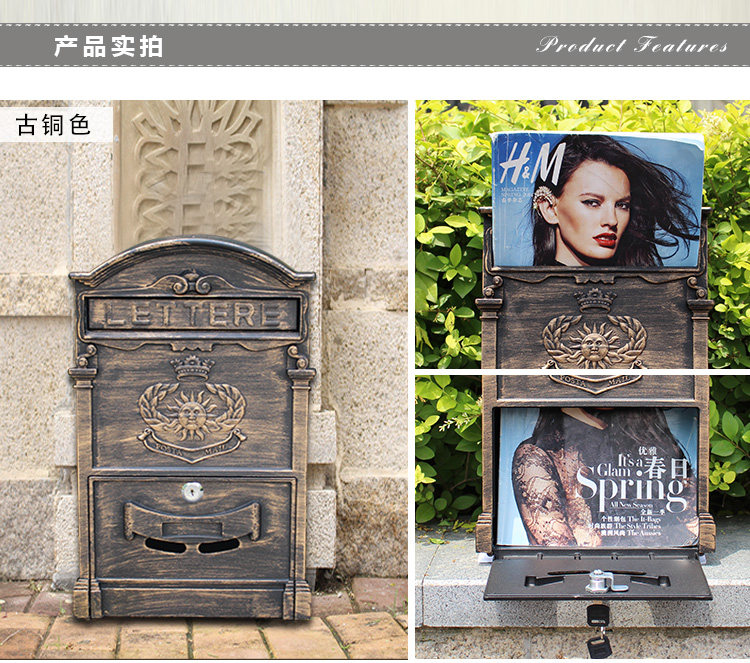 Электронная почта открытая европейская вилла алюминий Ржавсяное солнце плафон Настенный тонкий журнал почтовый ящик