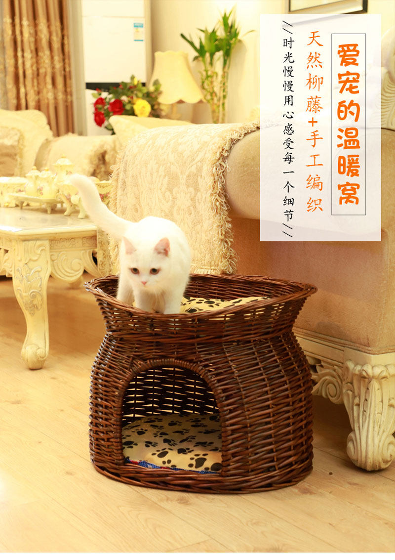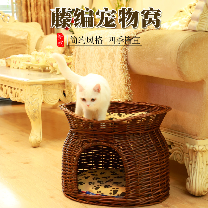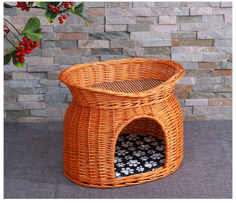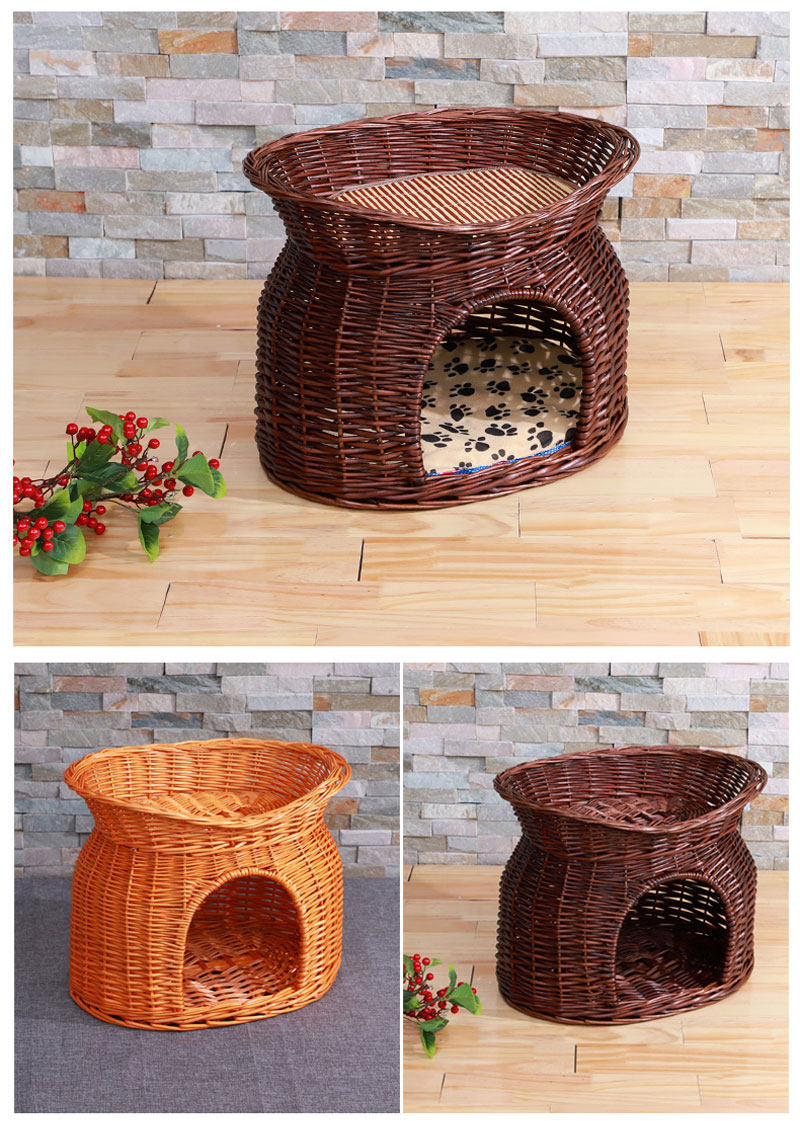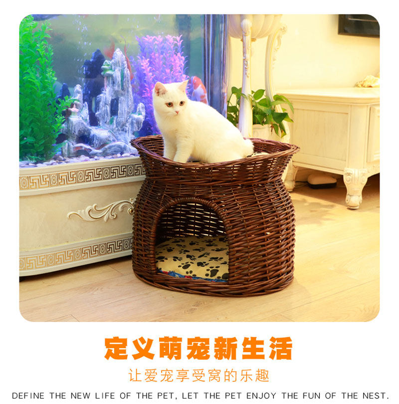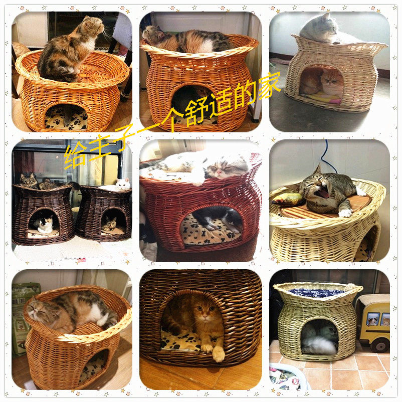 Ротанговый наполнитель для кошачьих туалетов Four Seasons General Summer Cool Nest Closed Cat House Villa темно Небольшую будку для слабого сна можно снять и постирать.