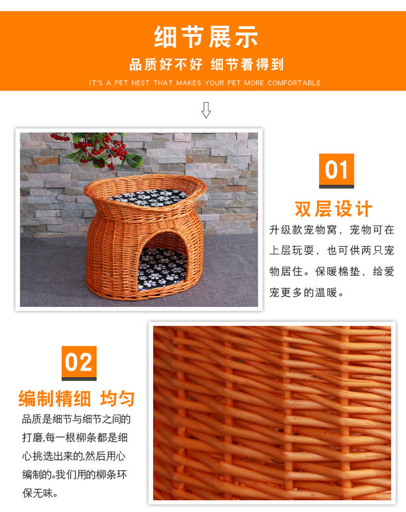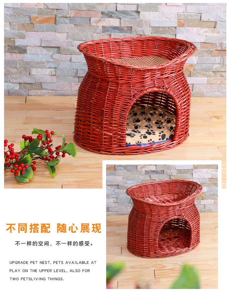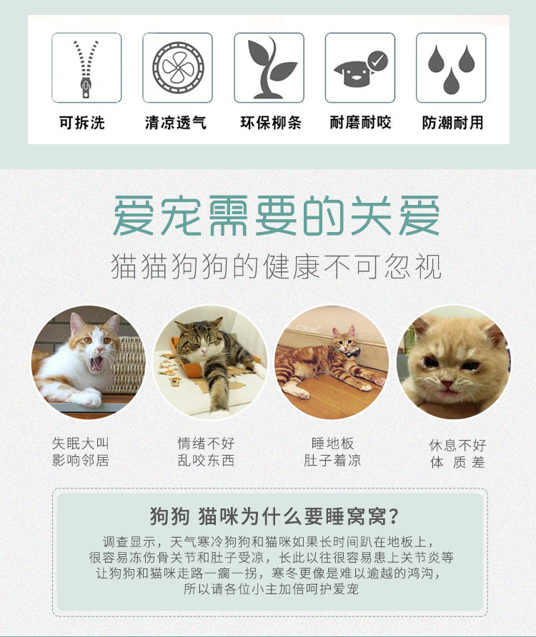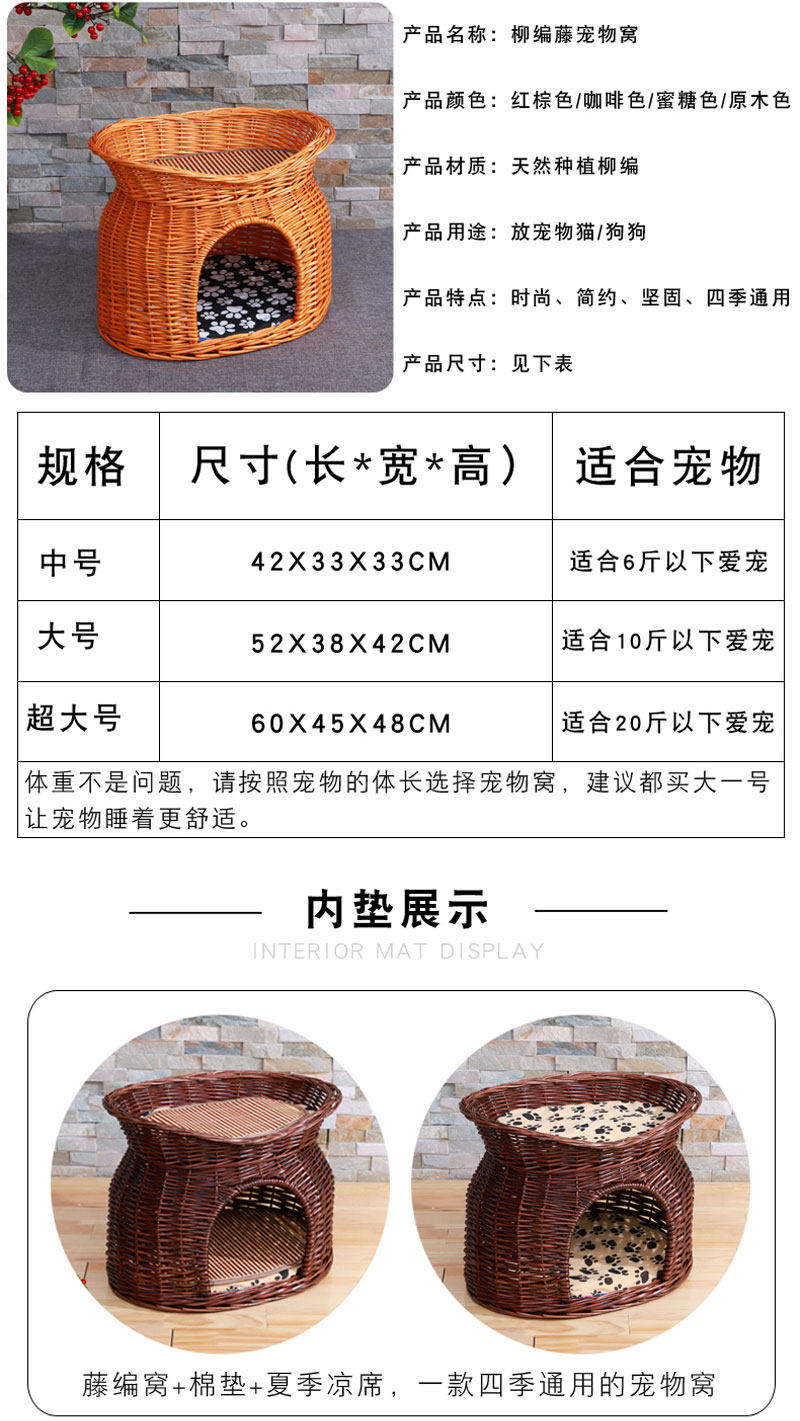 Ротанговый наполнитель для кошачьих туалетов Four Seasons General Summer Cool Nest Closed Cat House Villa темно Небольшую будку для слабого сна можно снять и постирать.