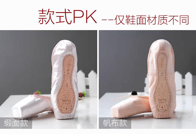 Три песка детские танцевальная обувь Адаптер балета Обувь адаптера балета Сатин Маленькая детская практика обувь на девочку Балетная обувь Взрослый атлас