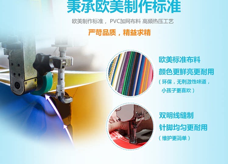 3.3. Материал & amp; nbsp; Материал: ткань из ПВХ с экраном 0,55, результаты испытаний Бюро по надзору за качеством показывают, что этот материал без Раздражает, без Токсичность детские Заканчивать полностью не имеет повредить. Этот материал представляет собой профессиональную надувную ткань с хорошей морозостойкостью и огнестойкостью.