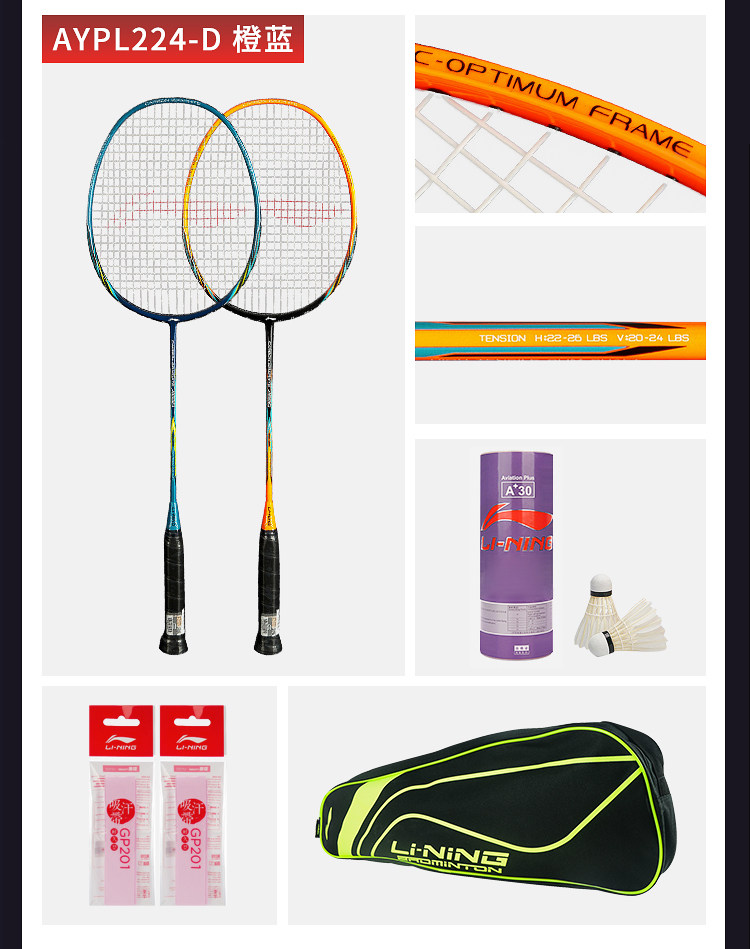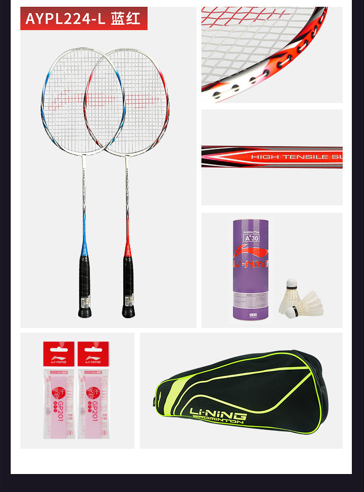 Li Ning Badminton Racket Официальный сайт оригинал Прочный один Двойной выстрел полностью Участок углеродного волокна Любительский новичок комплект