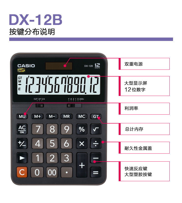 Casio / Western Europe DX-12B Солнечная 12-значная настольный бизнес 旃 Оператор