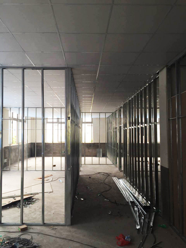 Ультра-недорогие фабричные офисные украшения Гуанчжоу полностью город верх дверь установка Легкая стальная киль штукатурка панель Кремний кальций панель разбиение