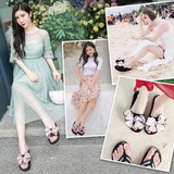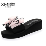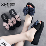 Тапки Женское лето носит море бантики Морской узел слово Тащить на высоком каблуке Пляж тапки нескользящие толстая Нижнее круто тапки женский